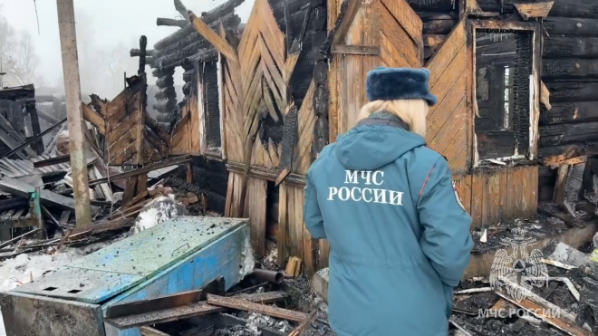 Фото: Пожар в Лодейнопольском районе разрушил жилой дом