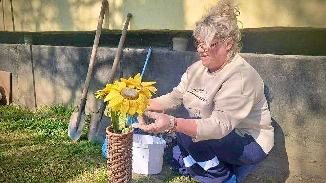 Сегодня 23-го августа в деревне Колтуши установили валенок 379-го размера, украшенный цветами. Большой арт-объект привезли на приход Свято-Иоанновского храма по инициативе автора изделия - художницы Валерии Лошак.