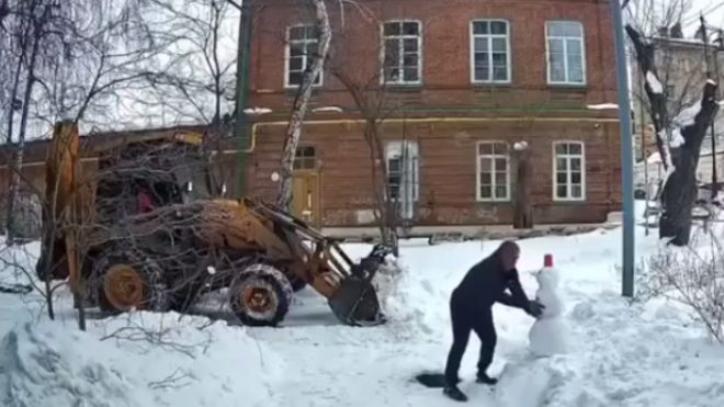 В то время как часть районов Ленобласти только ожидает снега в Приозерске настоящая зима. Сегодня местные жители слепили в городе первого снеговика, который появился на острове реки Вуоксы рядом с каменной крепостью.