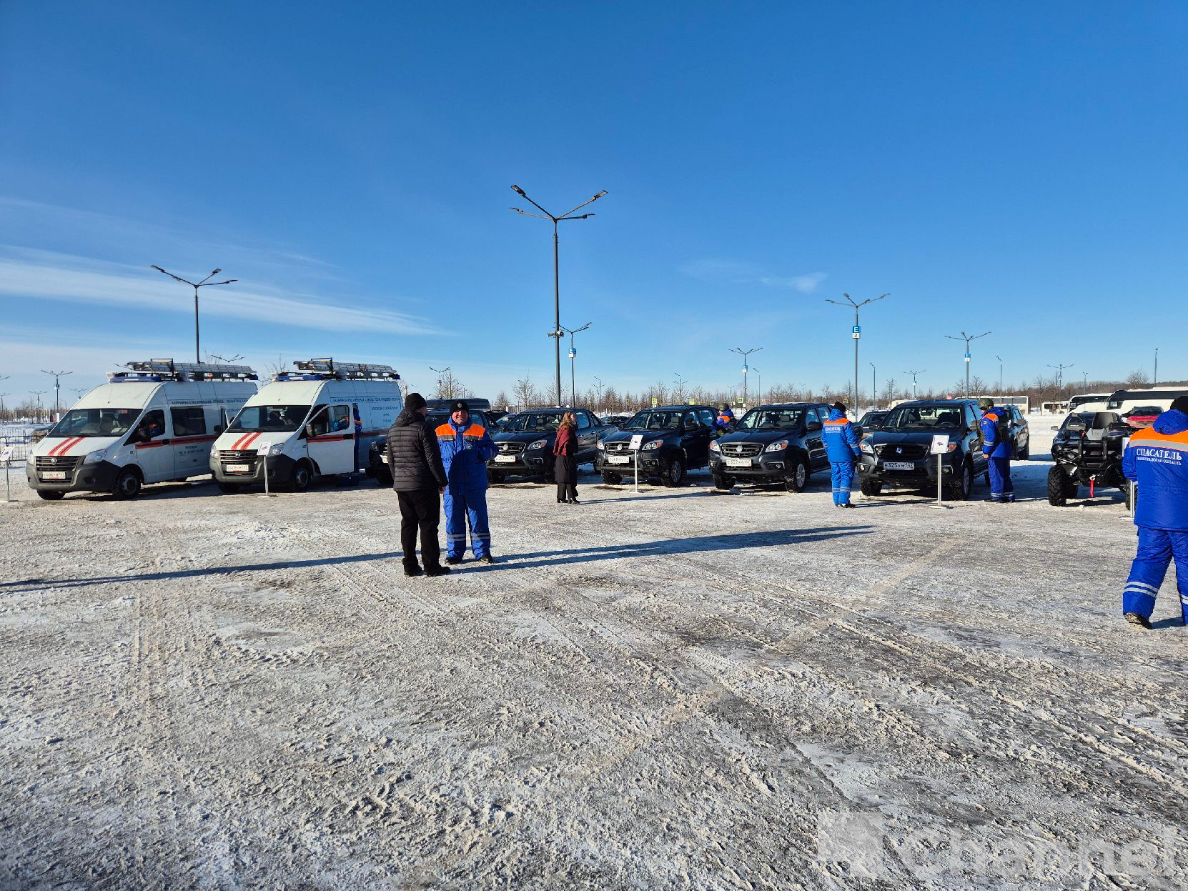 Спасателям передали 10 автомобилей повышенной проходимости SOLLERS ST6, 4 аварийно-спасательных автомобиля МАКАР 2871 LA, снегоход Fronter1000 с прицепом и два квадроцикла Stels Гепард ATV800, укомплектованные прицепом.