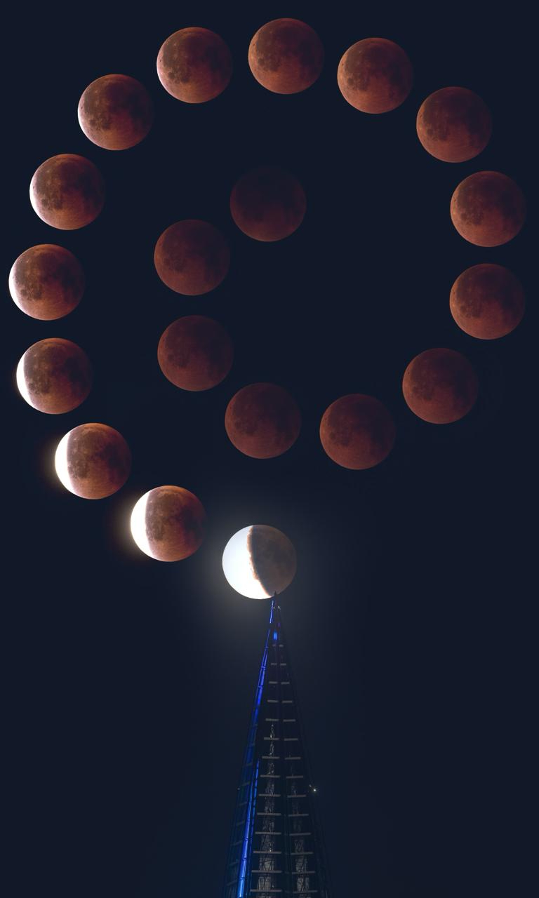 7 сентября 2025 года в Петербурге жители смогли увидеть часть полного лунного затмения. Его фазы запечатлены на коллаже, подготовленном Катей Стрельниковой специально для Лахта Центра.