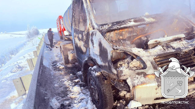 Сообщение о возгорании транспортного средства поступило бригаде огнеборцев в 11:31. На место происшествия прибыл состав 153 пожарной части Гатчинского отряда Леноблпожспас.
