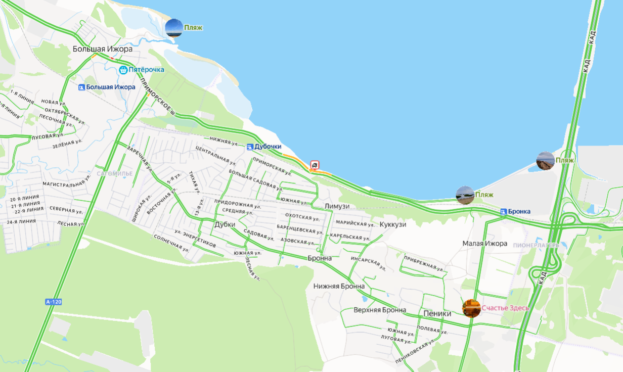 По данным на момент подготовки публикации движение на месте ДТП у Большой Ижоры затруднено на 1,11 километр.