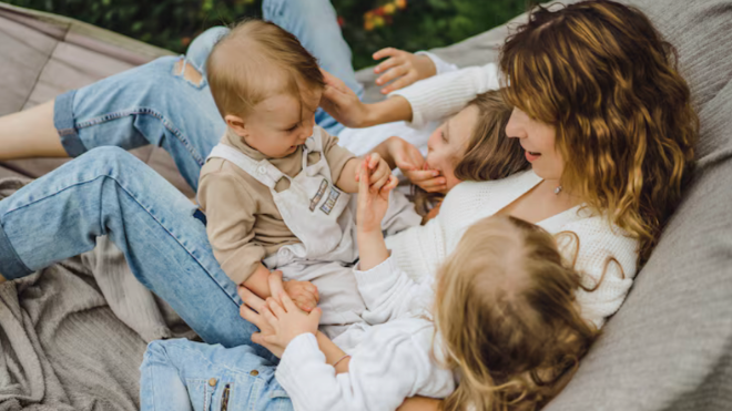 Фото: https://ru.freepik.com/free-photo/mother-with-children-having-fun-hammock-mom-kids-hammock_4175050.htm#