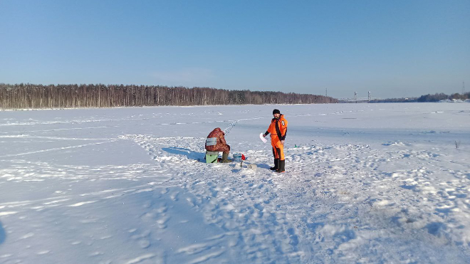 Сотрудники Аварийно-спасательной службы проводят патрулирование водных объектов. На территории Ленобласти зафиксировано более 50 традиционно сложившихся мест массового выхода рыбаков на лед.