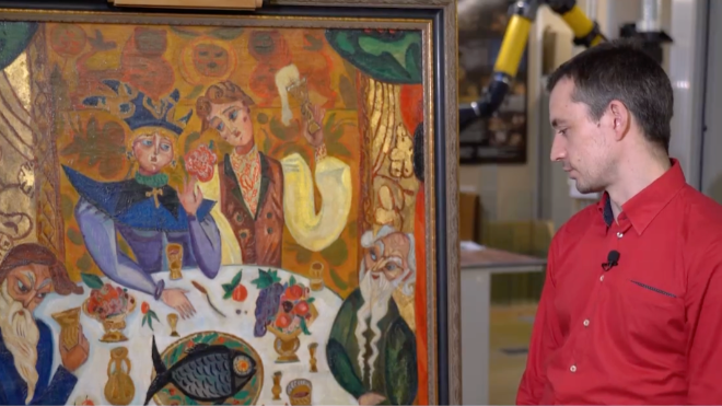 В итоге, кожа бювара смягчилась. Теперь специалистам предстоит замаскировать тонкой кожей трещины. После этого экспонат передадут в мастерскую реставрации ткани.