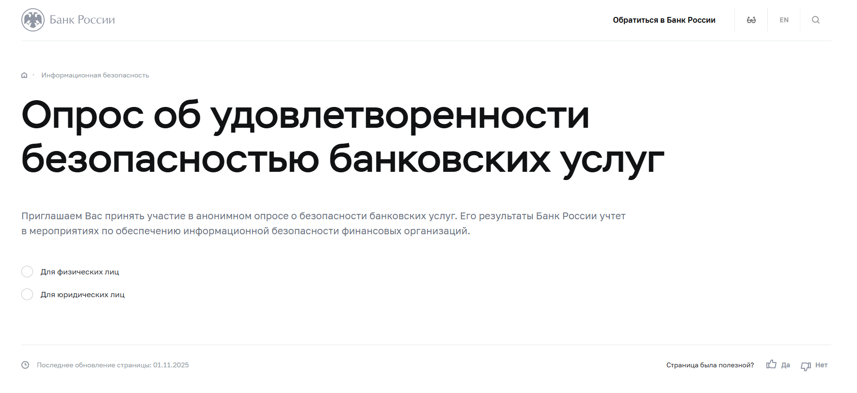 ЦБ РФ приглашает ленинградцев пройти опрос о безопасности банковских услуг