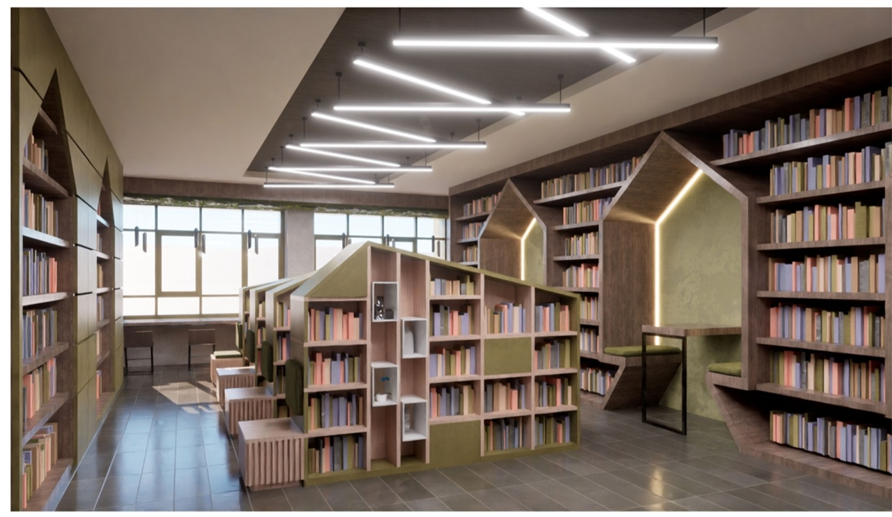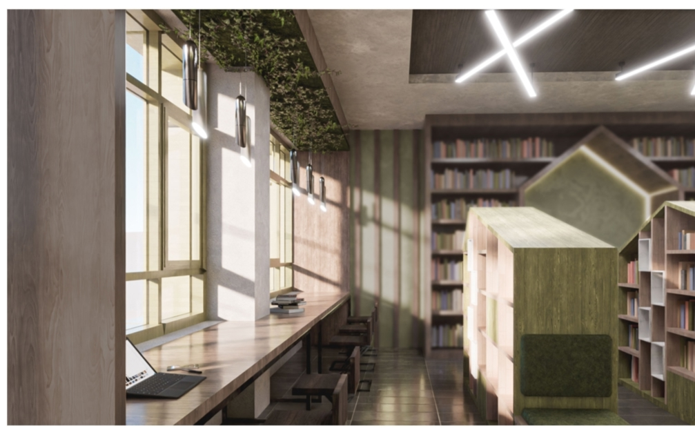 В библиотеке за счет зонирования и модернизации увеличат количество посадочных мест. Пространства получат возможность трансформироваться под разные сценарии деятельности. Здесь же появятся зоны для чтения и общения. Для юных читателей оборудуют мягкие посадочные места в виде домиков. Для уединенного чтения предусмотрели капсулы с книгами и местом внутри - одну из них выполнят в форме маяка.