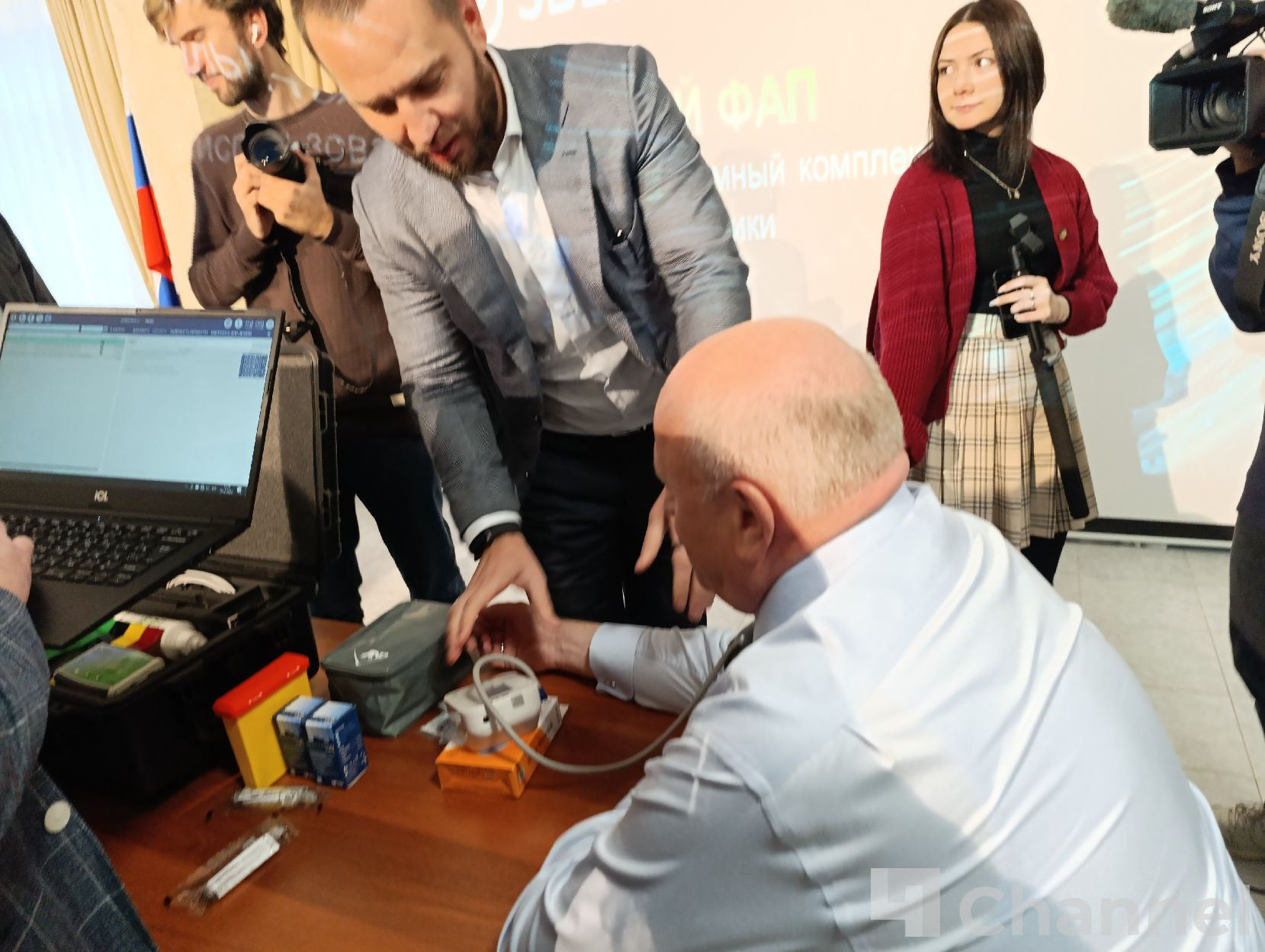 В компактном "цифровом чемоданчике" собраны все необходимые приборы: ЭКГ, тонометр, анализаторы крови и мочи. Искусственный интеллект автоматически расшифровывает показатели, оценивает симптомы и предлагает фельдшеру три наиболее вероятных диагноза, а все данные сохраняются в системе.