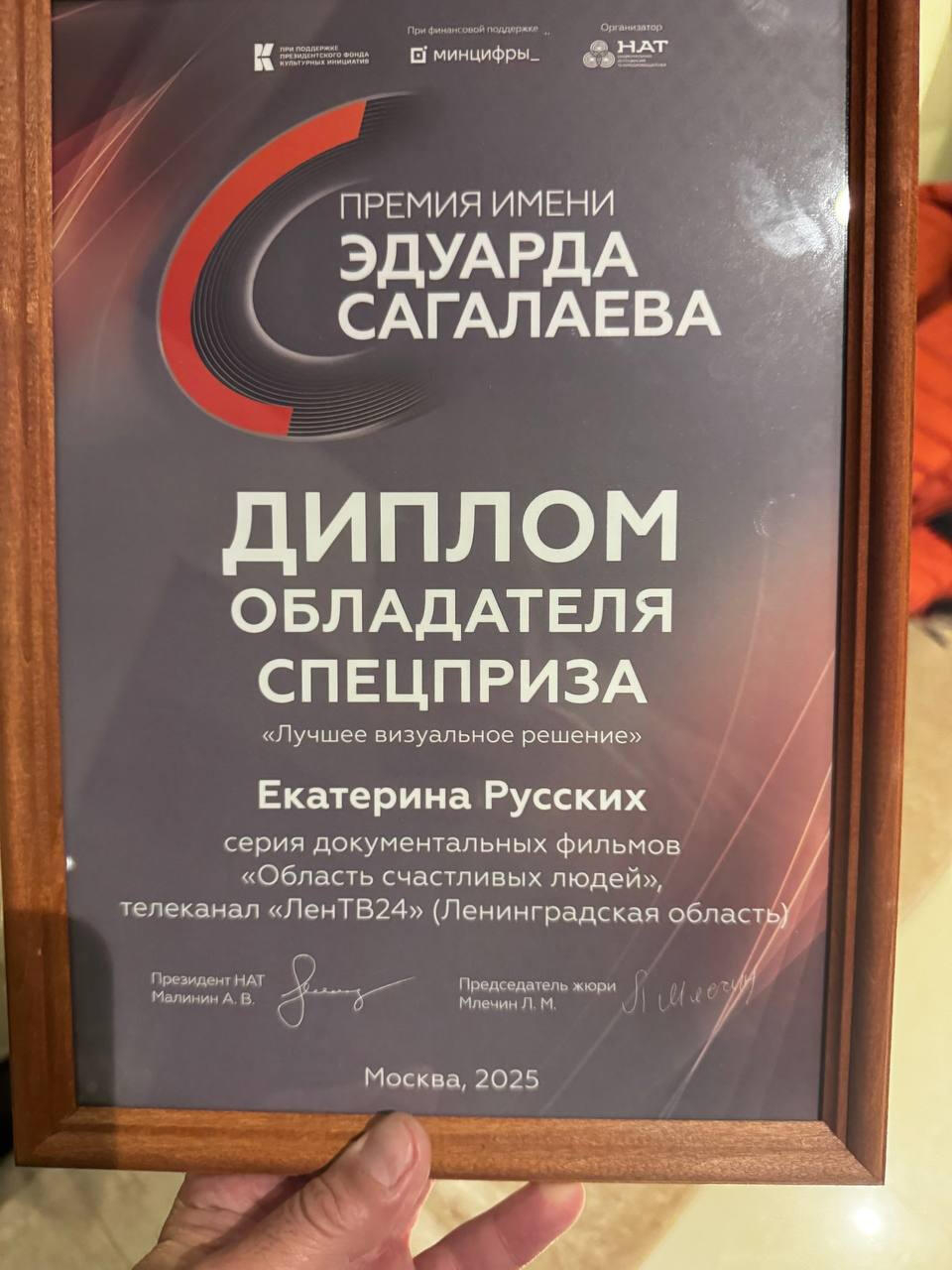 Сегодня, 16 октября, в Москве прошла торжественная церемония награждения премии Эдуарда Сагалаева. Специального приза удостоили телеканал ЛенТВ24 и Екатерину Русских.