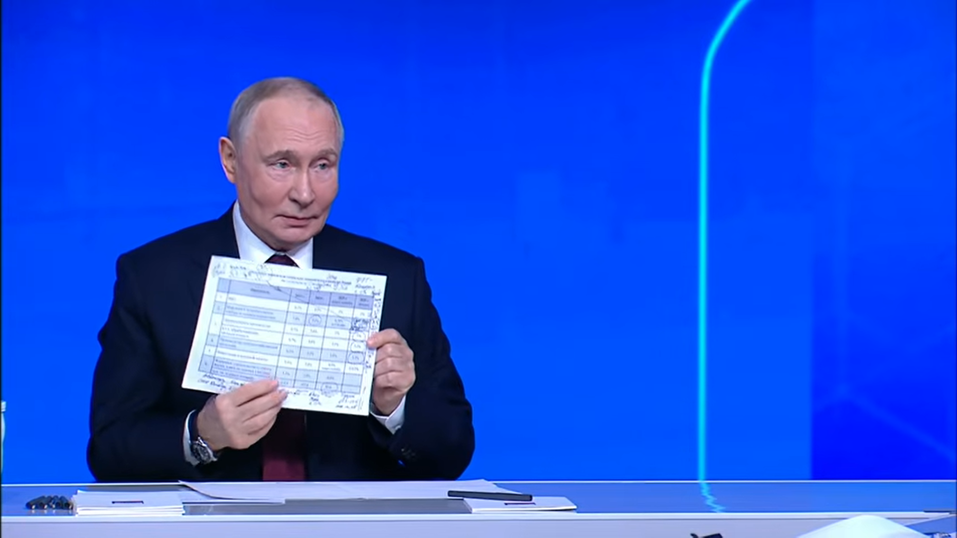 Президент РФ рассказал, что взял с собой на мероприятие таблицу с открытыми данными по экономической ситуации в стране за уходящие 12 месяцев. По словам Путина, рост ВВП составил 1%. Но если брать за последнюю трехлетку, то общий рост - 9,7%. Рост в еврозоне - 3,1% в это же время.