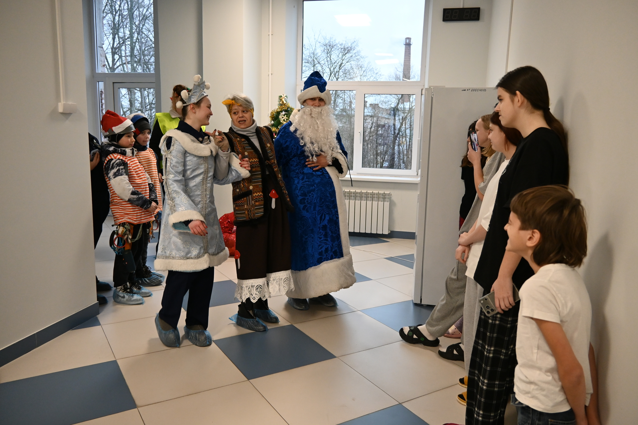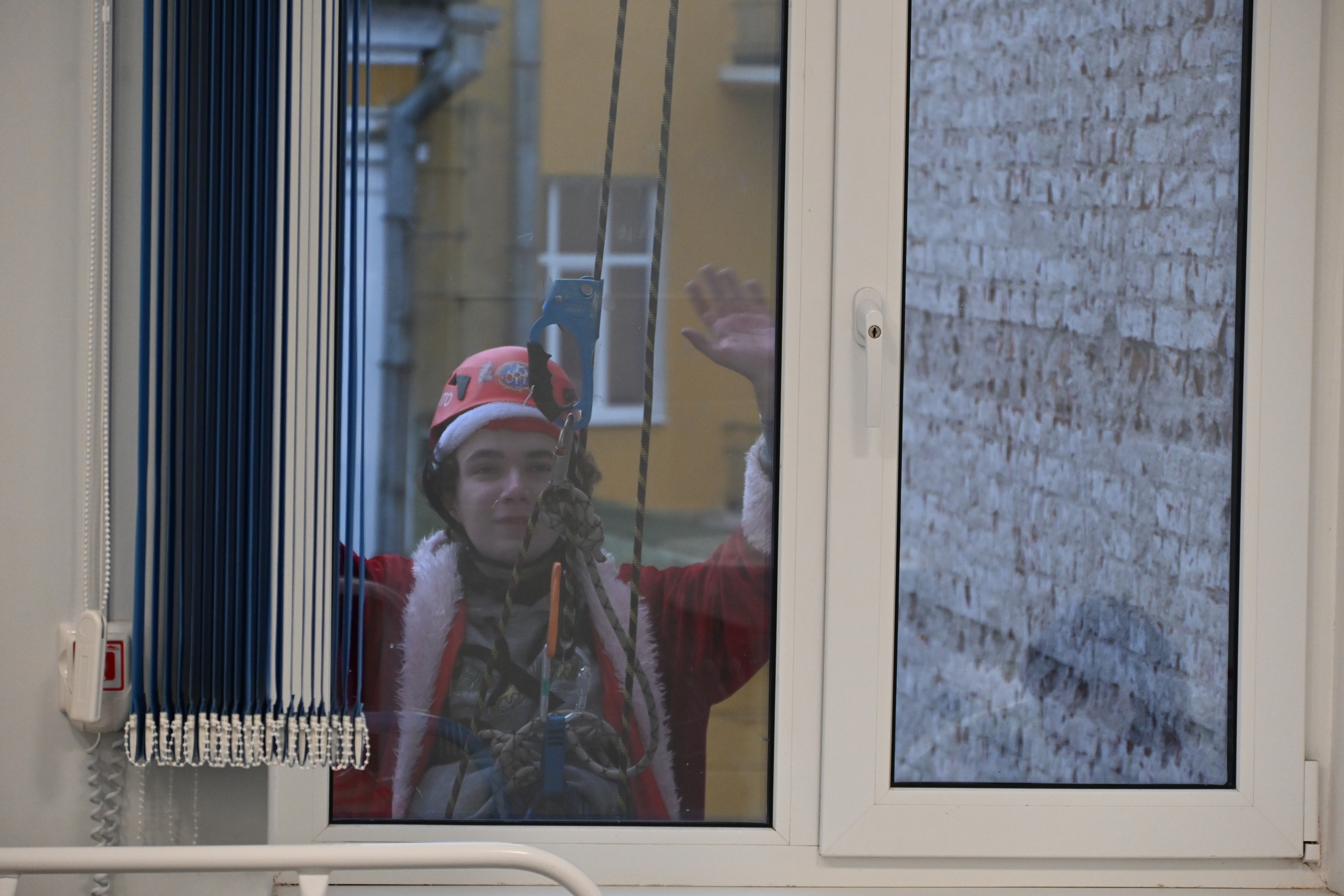 Сказочный волшебник поднялся по стене здания, чтобы пожелать ребятам скорейшего выздоровления, - рассказали в пятницу, 26 декабря, в администрации Выборгского района. Затем Дед Мороз вместе со Снегурочкой и Бабой Ягой провел для ребят развлекательную программу.