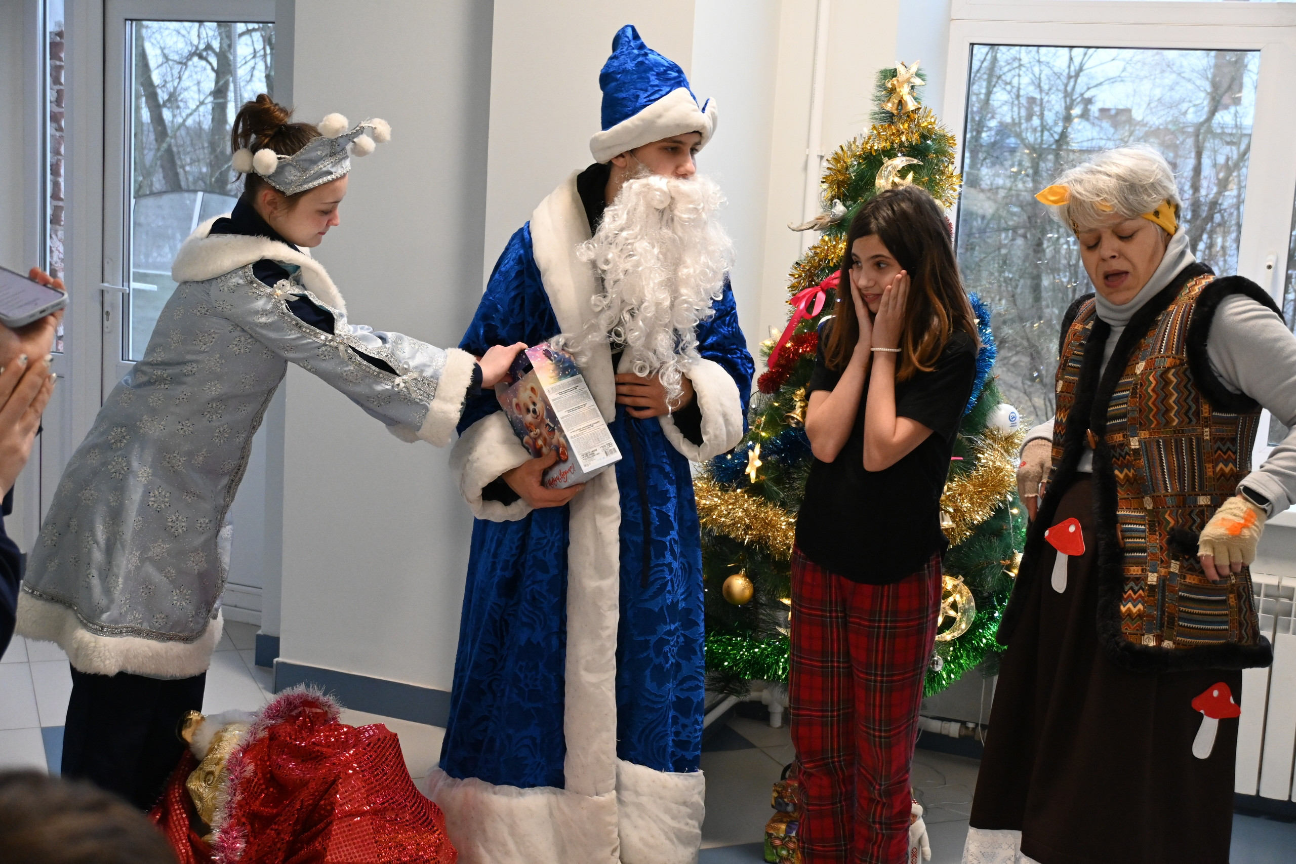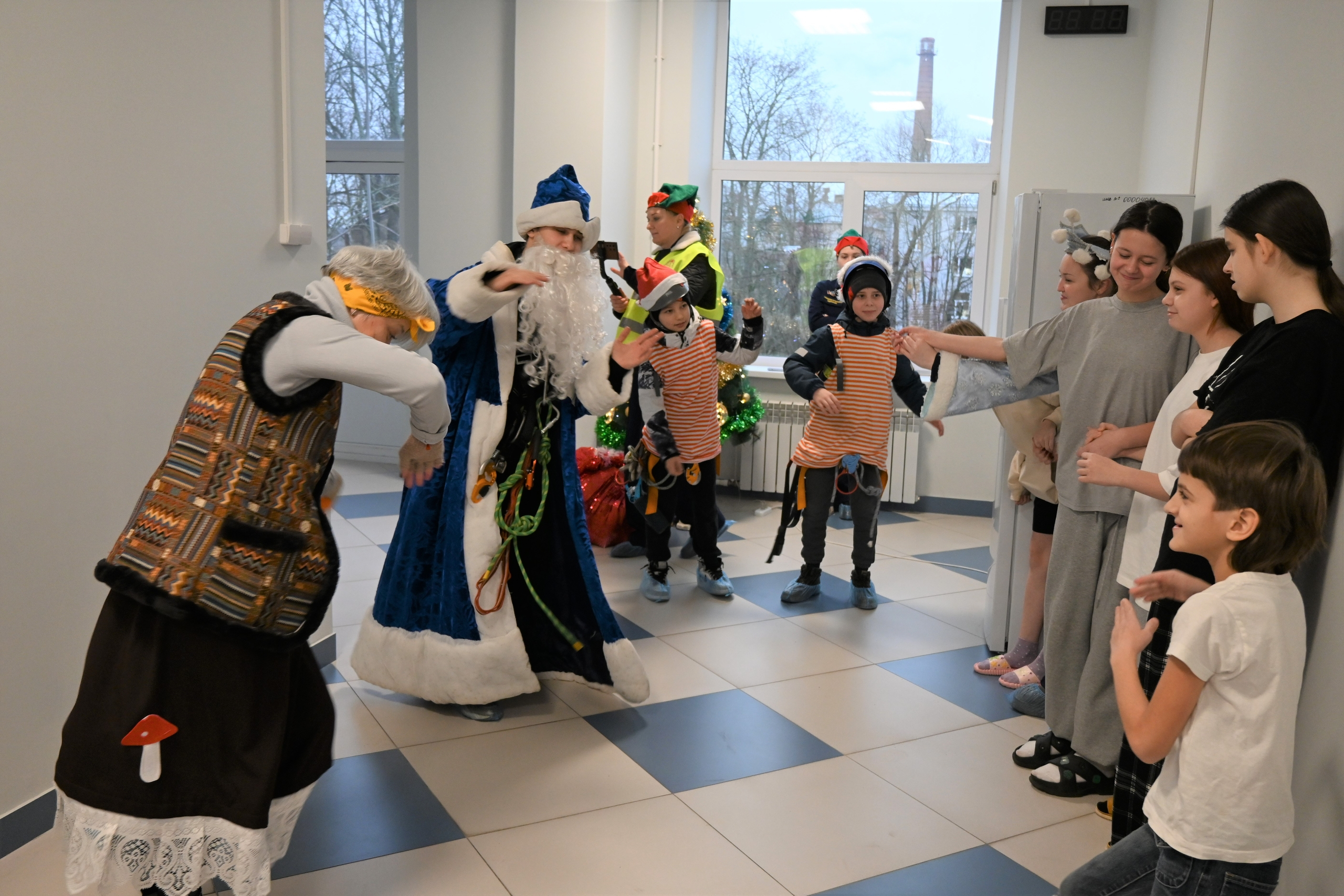 Пациенты Выборгской детской больницы водили хороводы, танцевали, пели песни, отгадывали загадки и рассказывали Деду Морозу стихи и свои самые заветные мечты. В конце праздника каждый ребенок получил сладкий подарок.