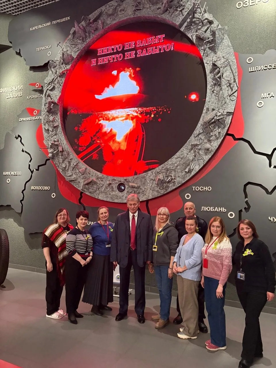 В 2018 году Дмитрий Песков присутствовал на открытии Музея-панорамы «Прорыв». Спустя восемь лет он вновь с удовольствием ознакомился с экспозицией, посвященной операции «Искра», в ходе которой было прорвано блокадное кольцо.