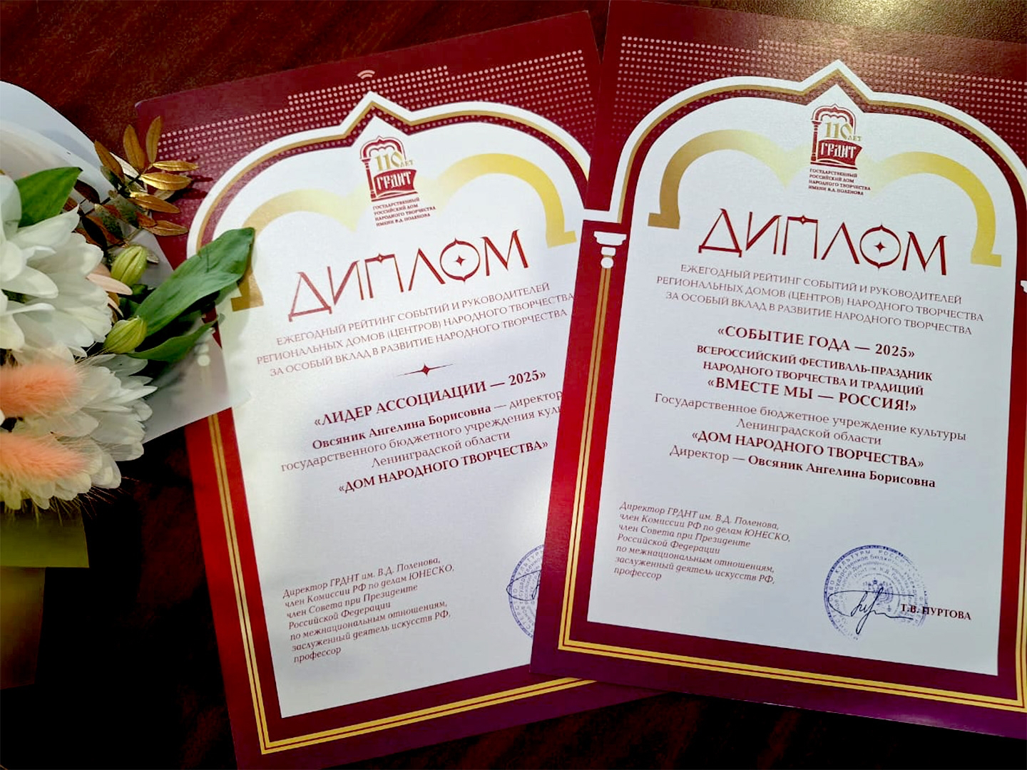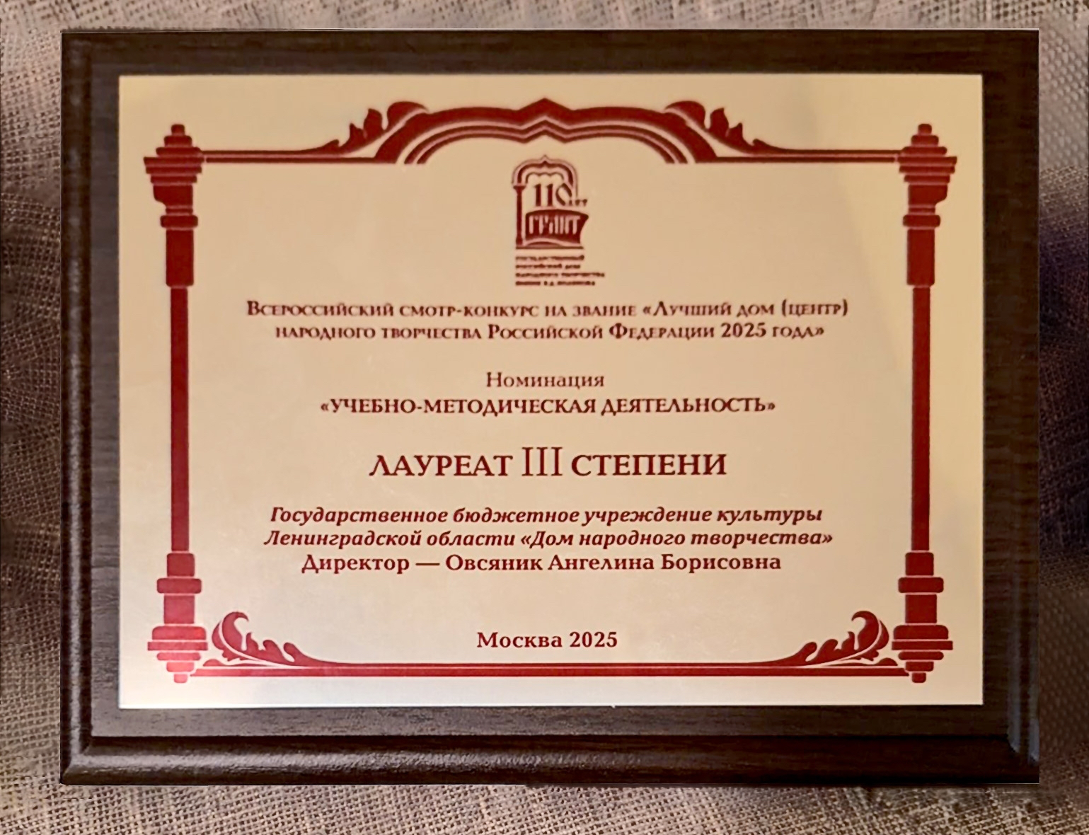 Дом народного творчества Ленинградской области стал лауреатом III степени Всероссийского смотра-конкурса «Лучший дом народного творчества РФ 2025 года». Учреждение из 47 региона отметили в номинации «Учебно-методическая деятельность».