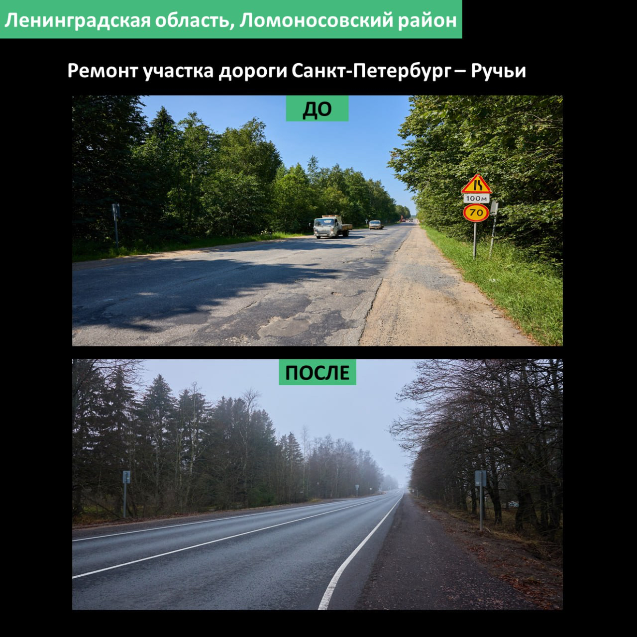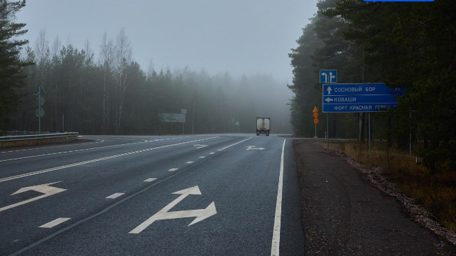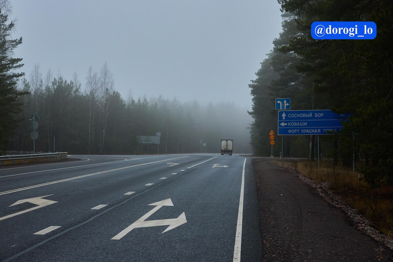 Работы развернулись от Большой Ижоры через Лебяжье и до перекрестка с дорогой «Форт Красная Горка - Сосновый Бор». Участок трассы обновили в рамках нацпроекта «Инфраструктура для жизни»