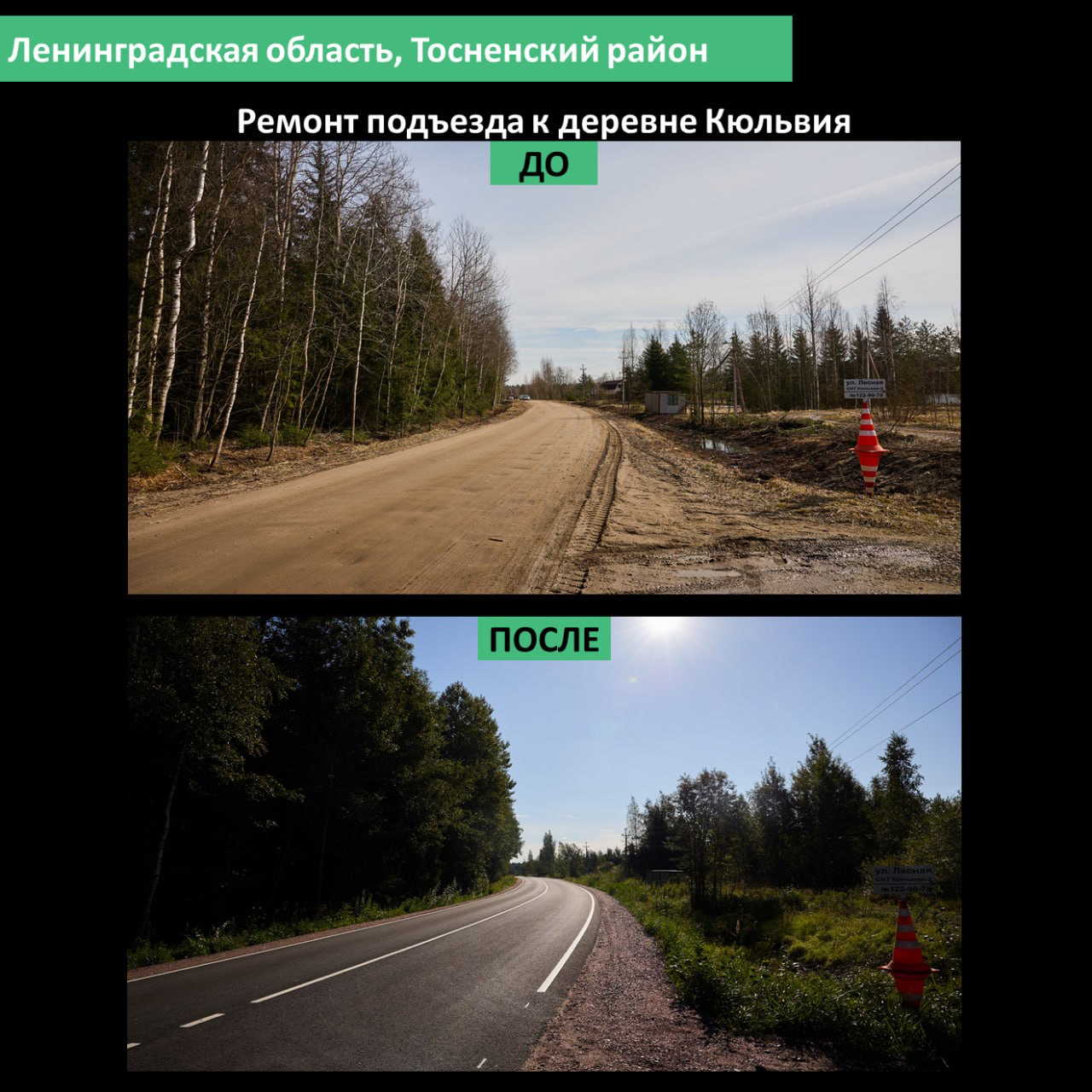 В Тосненском районе завершился ремонт подъезда к деревне Кюльвия. Работы проводились в рамках совместной программы Ленинградской области и Санкт-Петербурга по обновлению дорог к садоводствам.