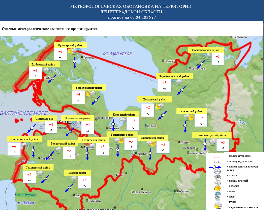 Во вторник, 7 апреля, в Ленинградская области ожидается плюсовая температура. По прогнозу ФГБУ "Северо-Западное УГМС", в большинстве районов пройдет дождь.