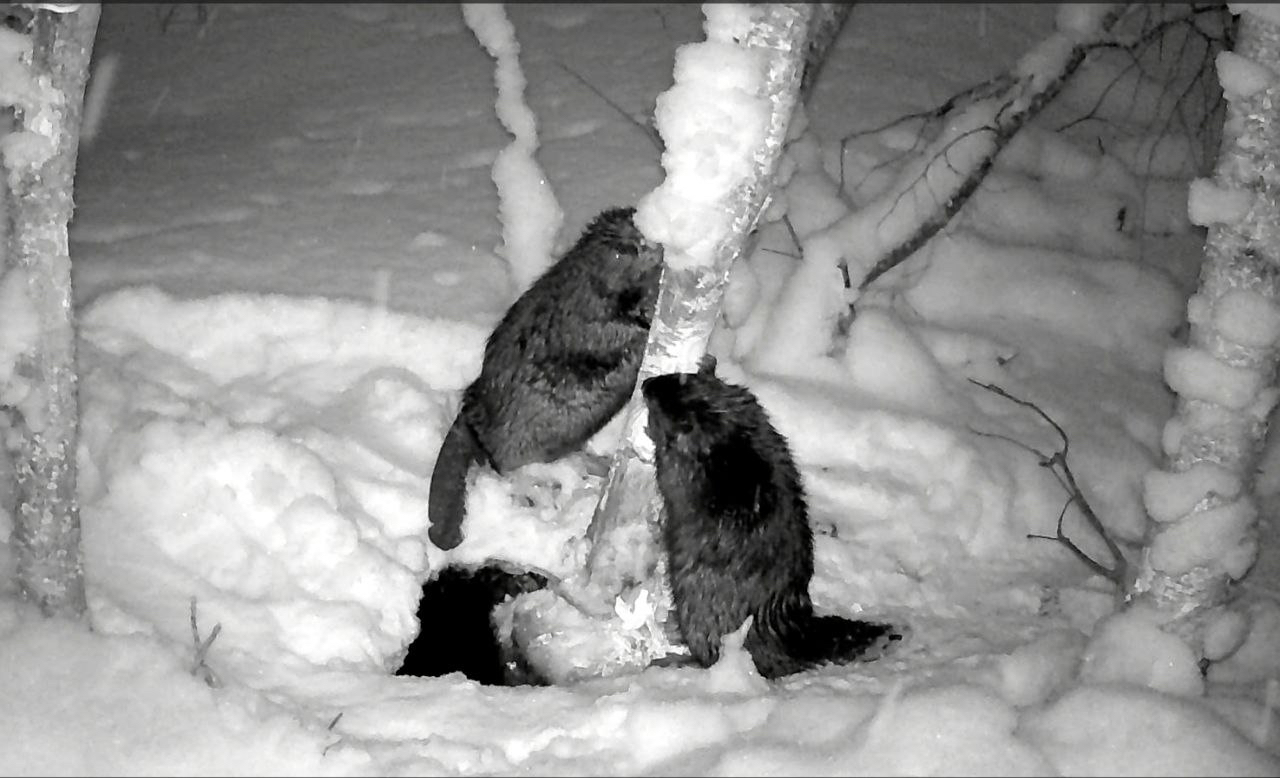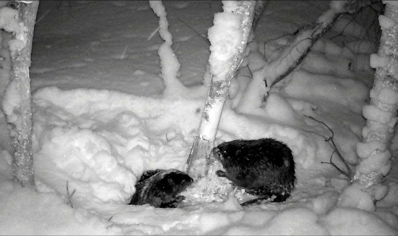 В Выборгском районе Ленинградской области Кристине Кашкаровой удалось запечатлеть семейную пару бобров. Животные дружно и сплоченно пытались перепелить дерево, чтобы добраться до своей основной пищи - веток.