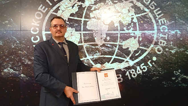 В московской штаб-квартире РГО прошла торжественная церемония награждения представителей различных экспедиций. Руководителю проекта "Острова Памяти" Илье Дюринскому вручили благодарность от главы государства за активное участие в деятельности одного из старейших географических обществ в мире.