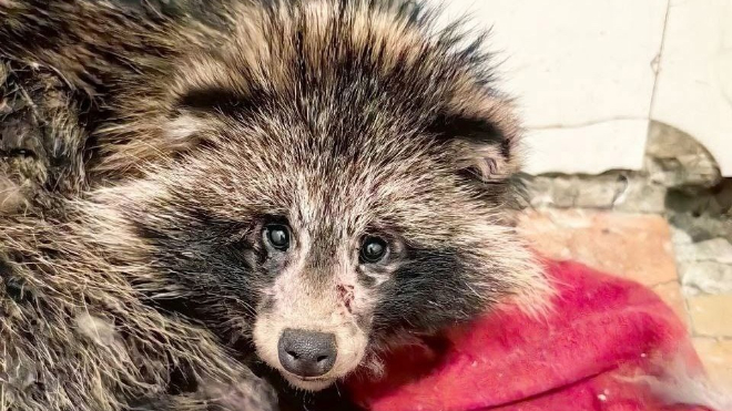 Енотовидная собака после автоаварии в Ленобласти попала в реабилитационный центр