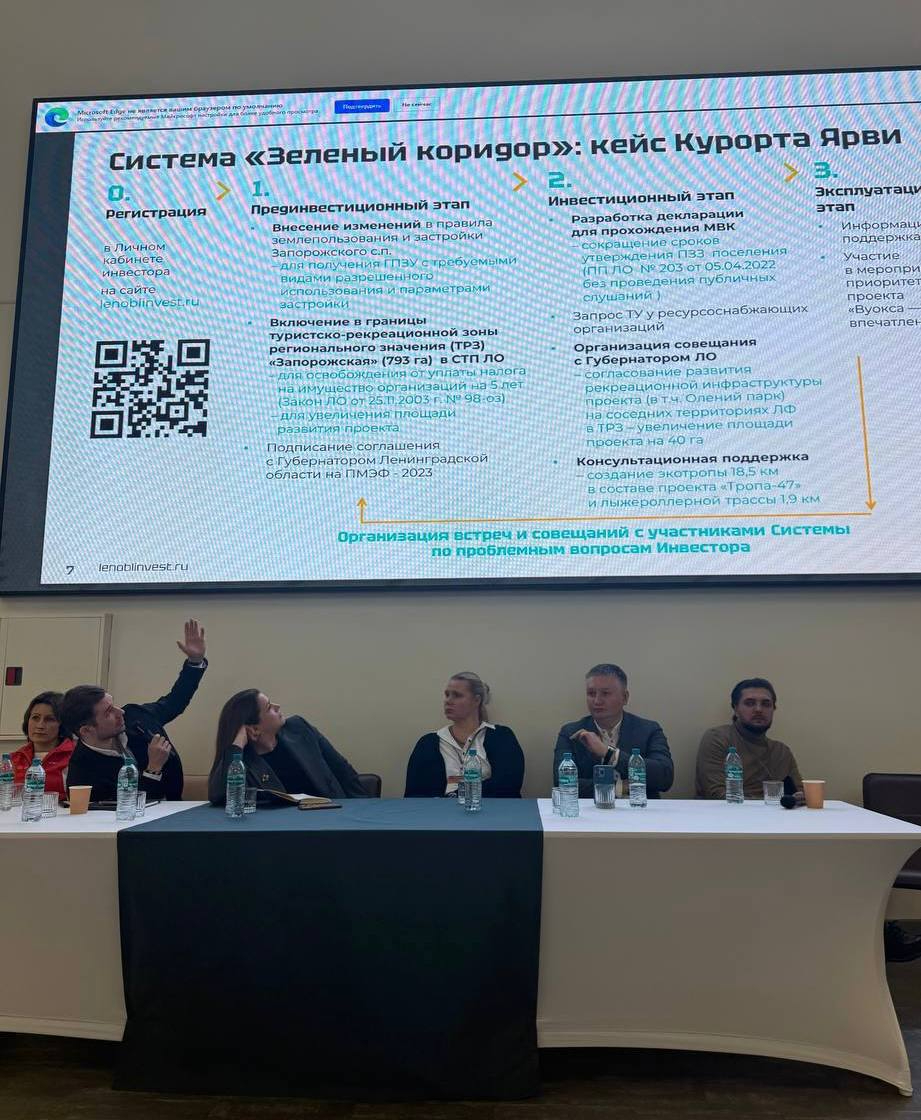 Исполнительный директор ООО "Озерный край" (курорт Ярви) Евгений Чмутов отметил, что единый центр сопровождения инвесторов в Ленобласти является преимуществом региона. По его словам, успешный проект на раннем этапе должен координироваться не только с органами власти, но и с местным сообществом, а также учитывать современные тренды развития индустрии.