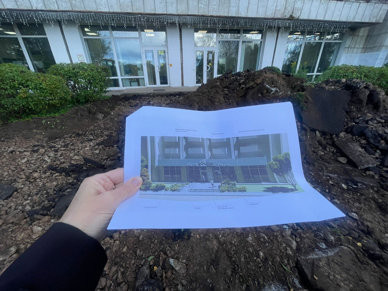 На объекте стартовало благоустройство прилегающей к библиотеке территории. Ход работ оценил глава администрации Тихвинского района Алексей Брицун.