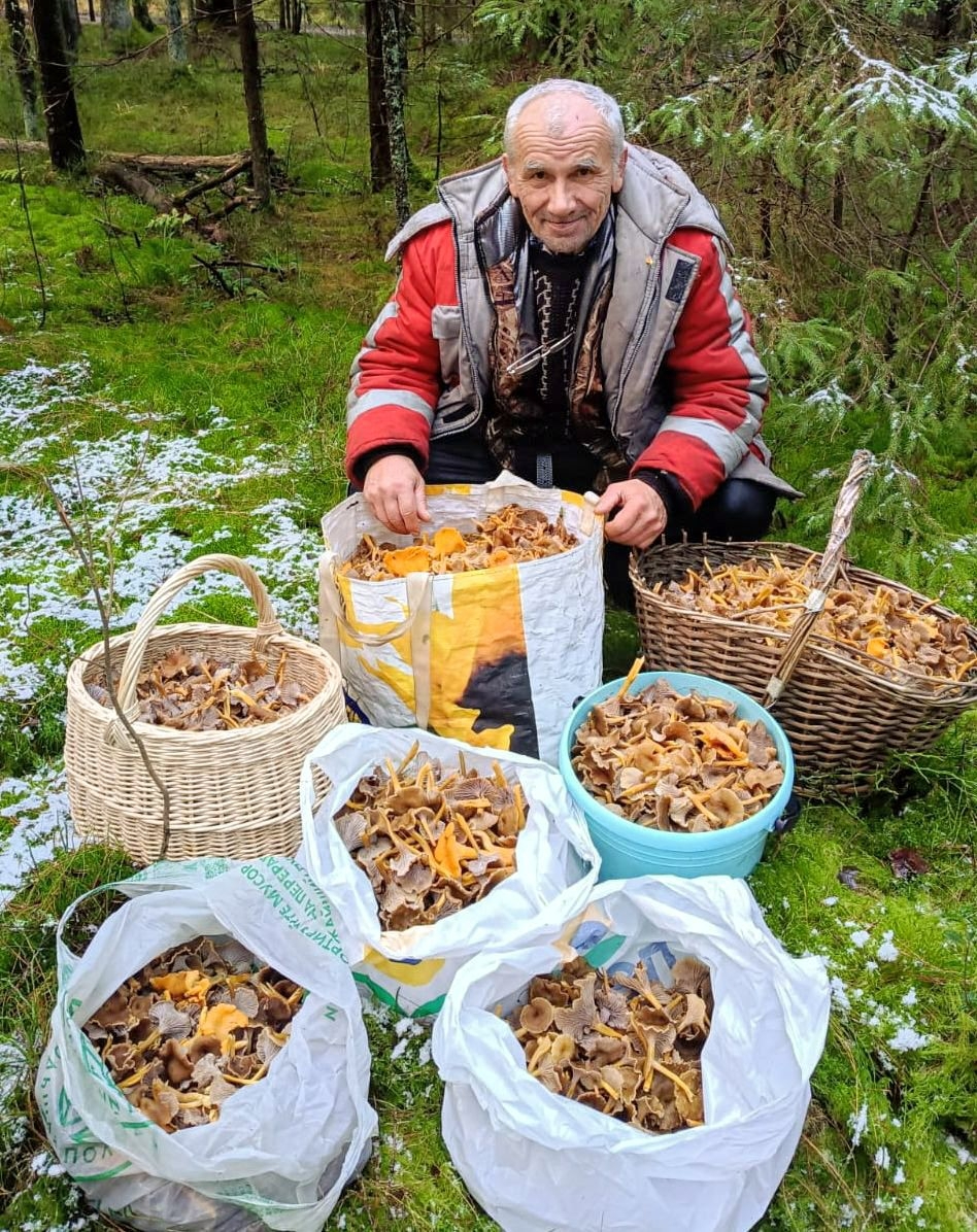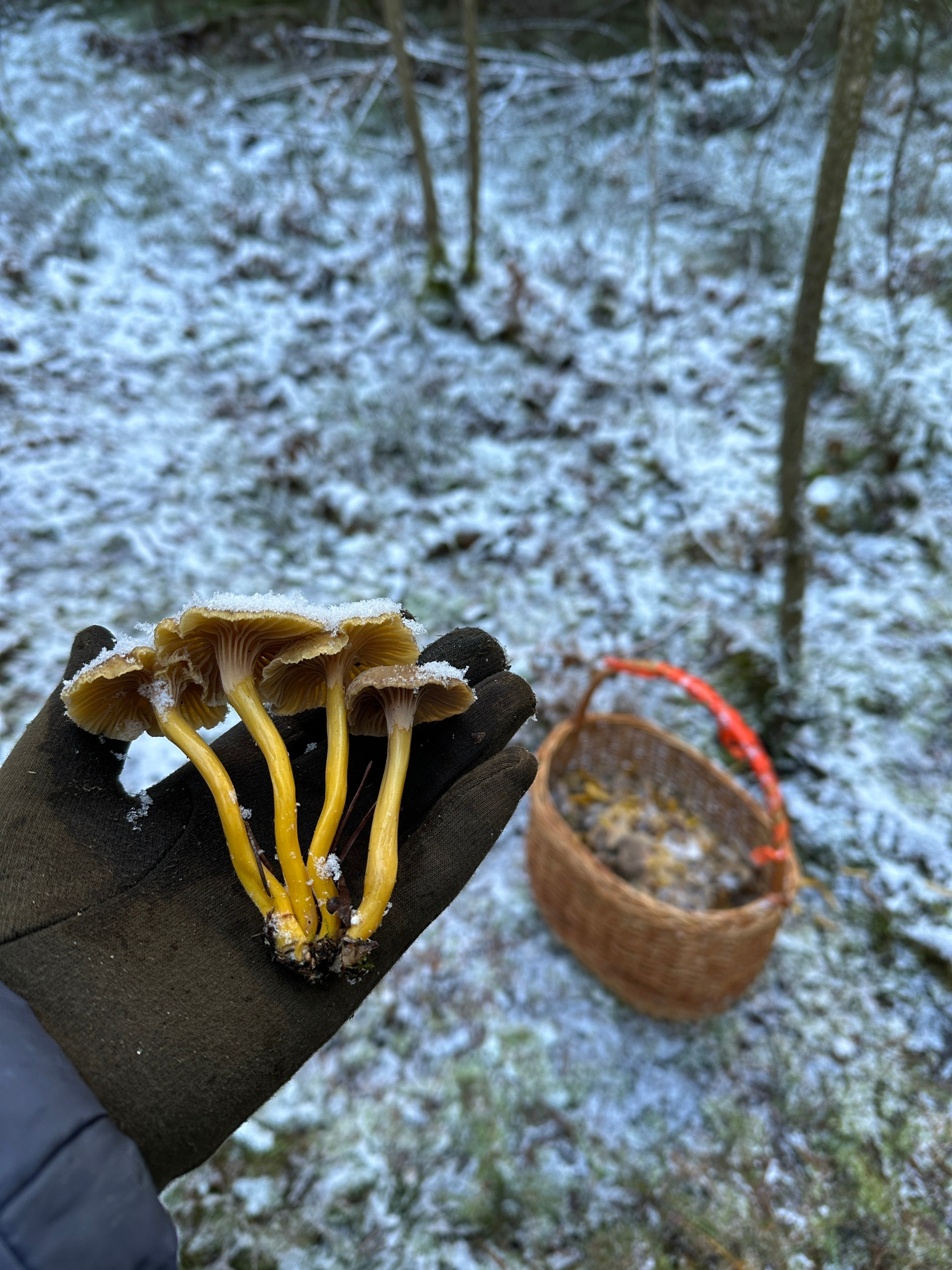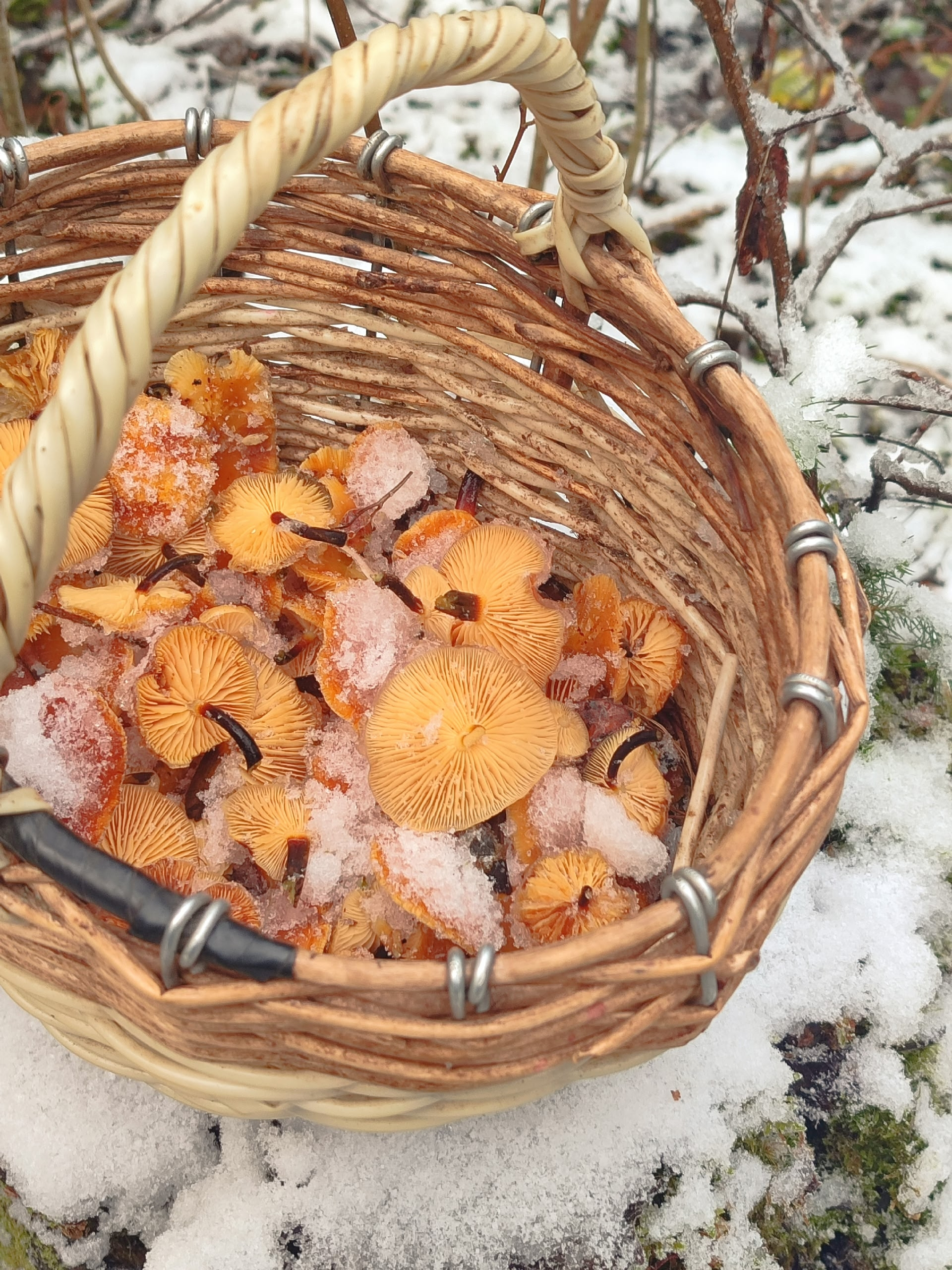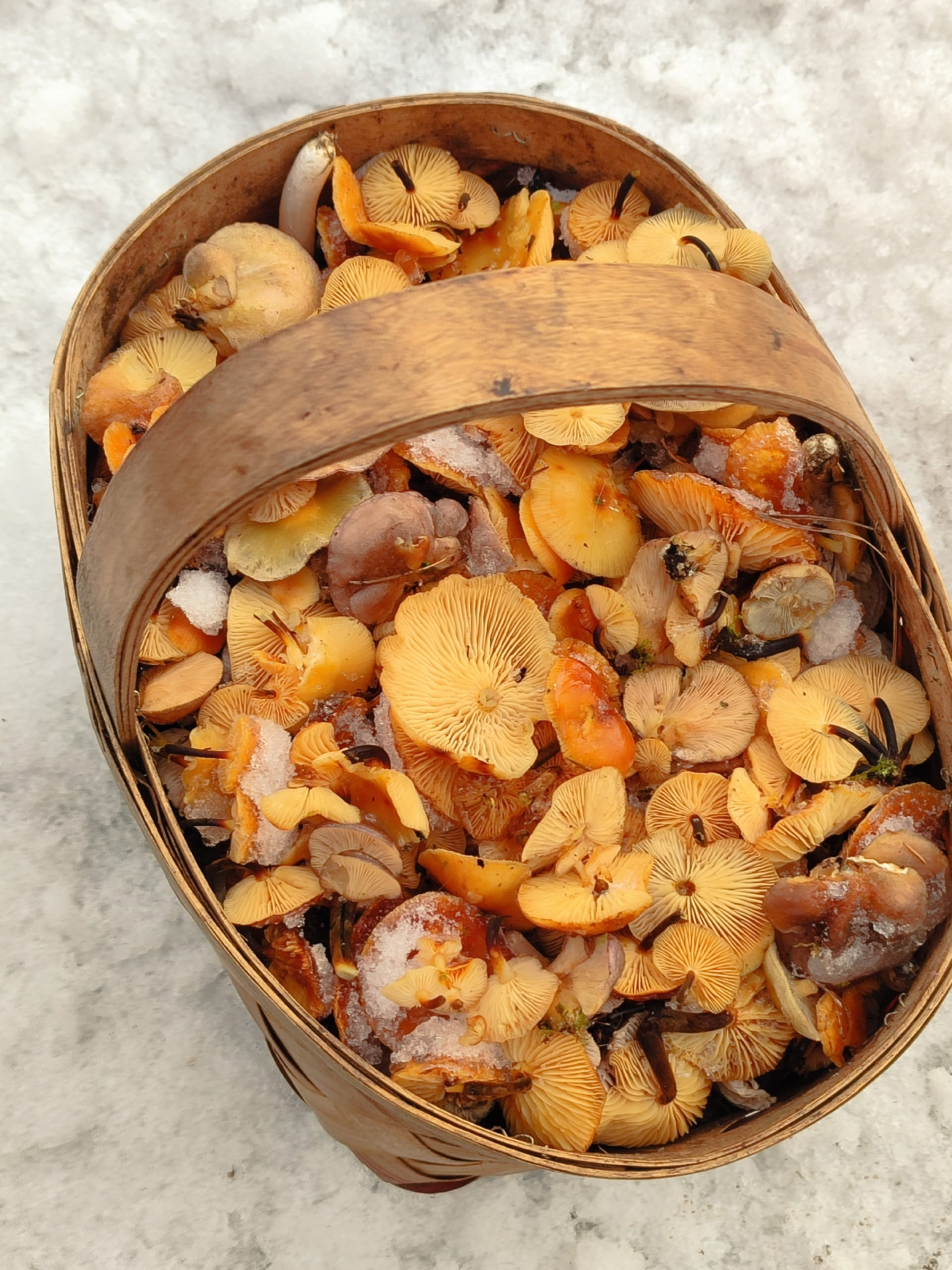 Грибники собирают полные корзины в заснеженных лесах Ленобласти