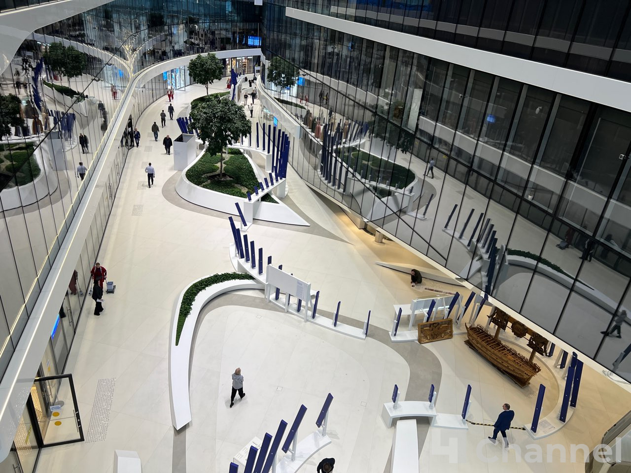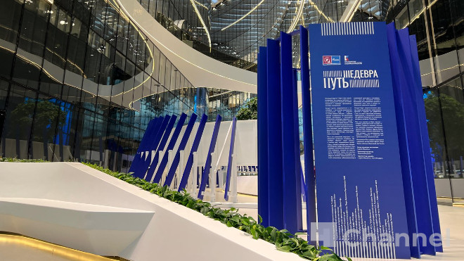 В Атриуме Лахта Центра в Петербурге представили инсталляцию "Путь шедевра". Она воплощает собой исторический и личный путь, представленный в виде волны или ДНК - каждый выбирает сам, как ее воспринимать.