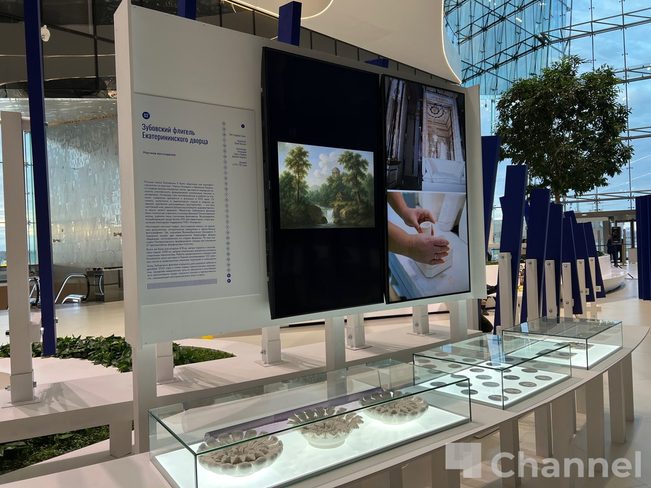200-метровая инсталляция дополнена историческими памятниками: частью декора из Леонского зала Екатерининского дворца, фрагментами линейного корабля "Полтава" и другими экспонатами, которые были отреставрированы при поддержке ПАО "Газпром".