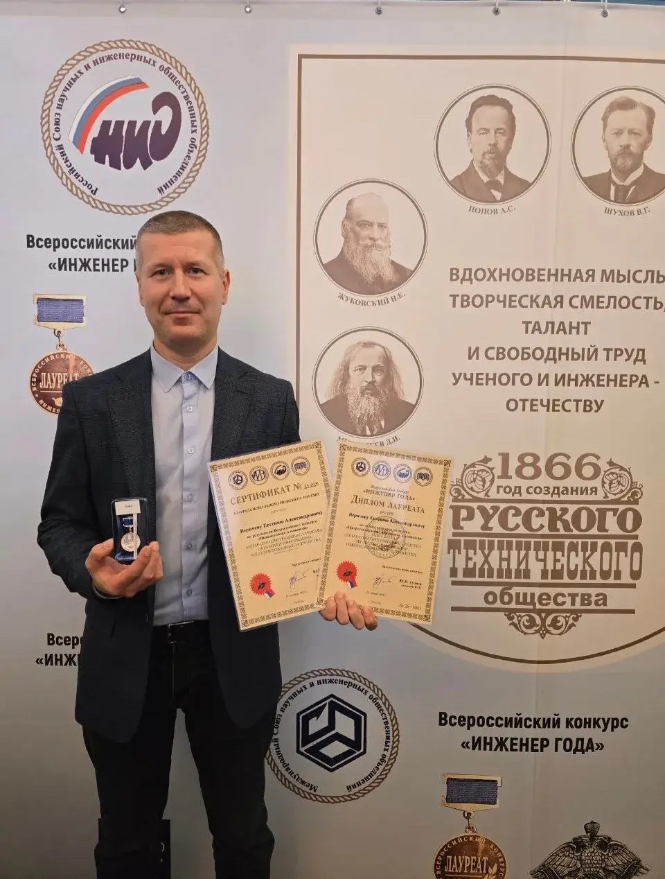 Житель Кингисеппа стал единственным лауреатом конкурса из Ленинградской области. Евгения Веричева наградили дипломом и памятной медалью «Лауреат конкурса». Его имя также внесли в Реестр профессиональных инженеров России.