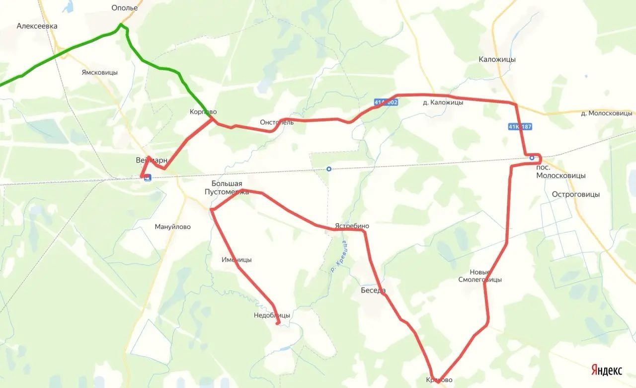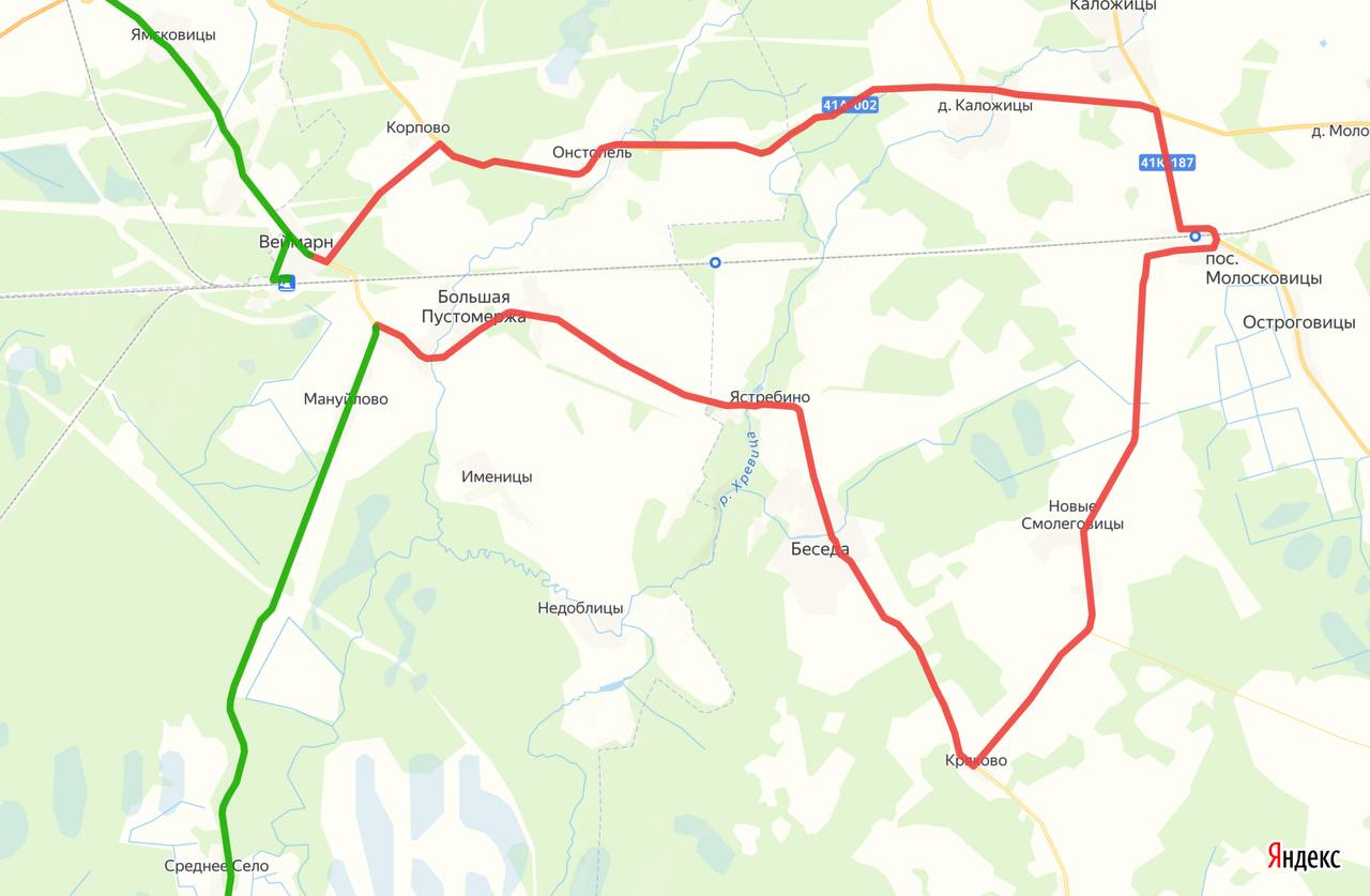 Изменения затронут только отправления от конечных пунктов. Автобус №76 от деревни Загорье выйдет на рейс в 11:20. Маршрут №71 от деревни Недоблицы через деревню Ополье будет отправляться в 08:05 (21 октября) или 08:45 (22 октября), от деревни Недоблицы - в 15:05 и 18:00, от деревни Большая Пустомержа - в 19:30.