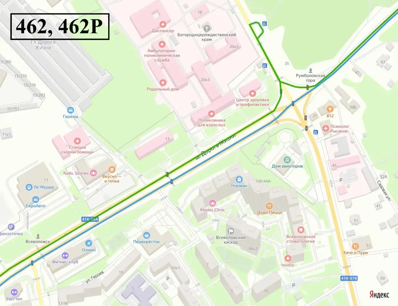 В обоих направлениях автобусы будут ехать по шоссе Дорога Жизни, без заезда в микрорайон Котово Поле.