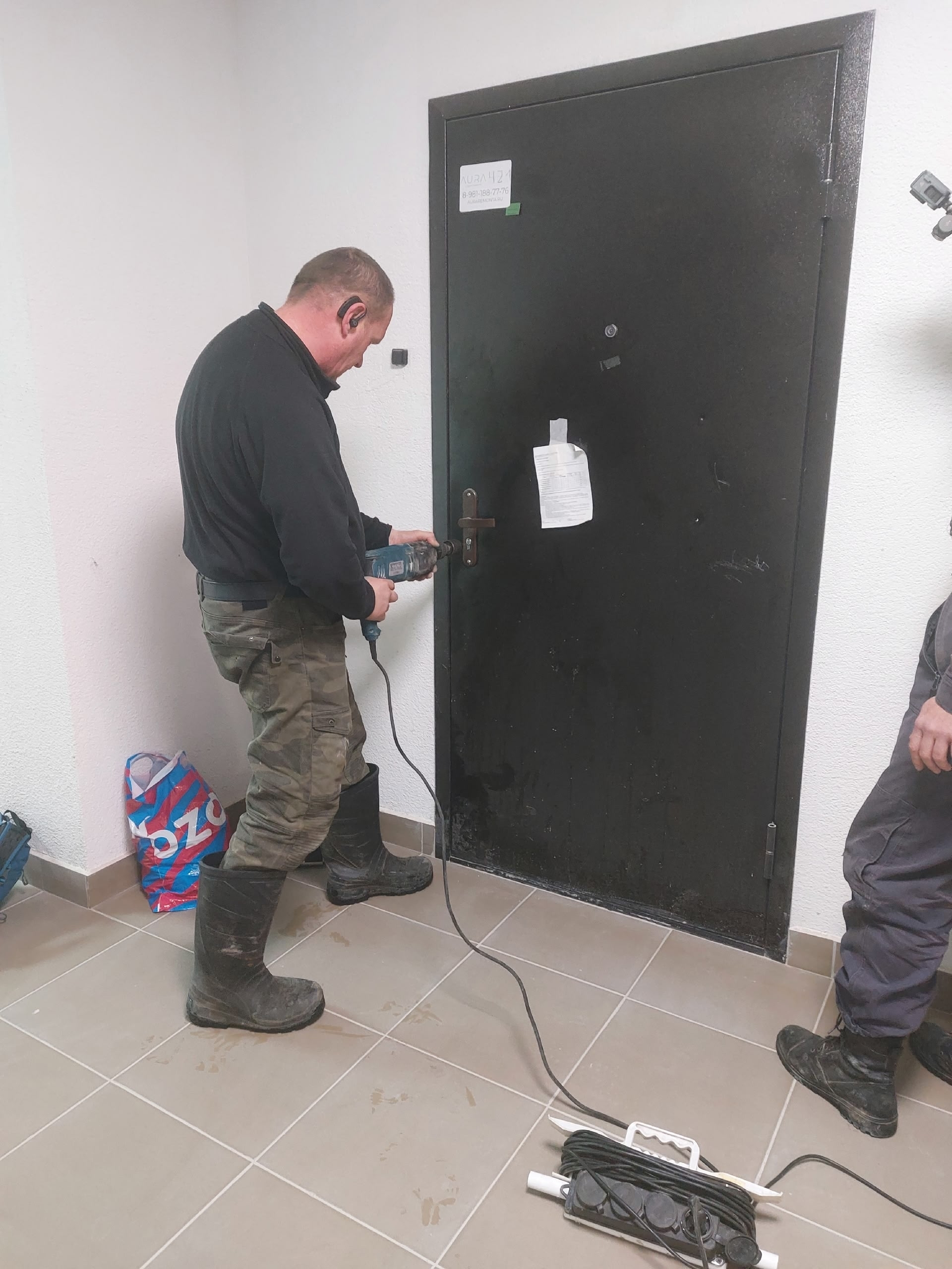 Тогда спасатели решили достать кошку из квартиры, расположенной на 8-м этаже. Однако квартира не была сдана застройщиком и пустовала. Благодаря настойчивости Полины, через управляющую компанию удалось найти местного сантехника. Вместе они вскрыли дверь, высверлив замок.