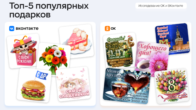 ВКонтакте и Одноклассники назвали регионы России, где чаще всего дарят онлайн-подарки.