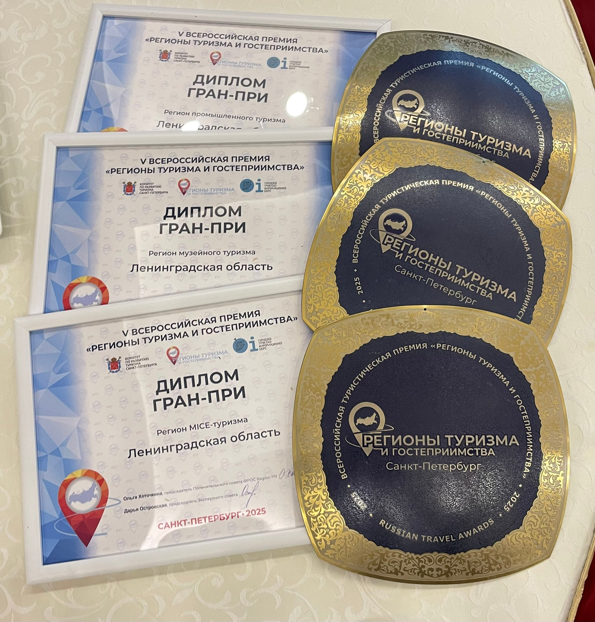 Ленинградская область стала обладателем трех Гран-При на V Всероссийской премии «Регионы туризма и гостеприимства». Церемония награждения победителей состоялась в воскресенье, 14 декабря, в Санкт-Петербурге.