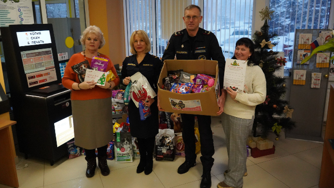 В посёлке Каменка начальник Выборгского отряда Александр Морозов снял с ёлки шарик-открытку от дочери участника СВО. Девочка получила сертификат в спортивный магазин.