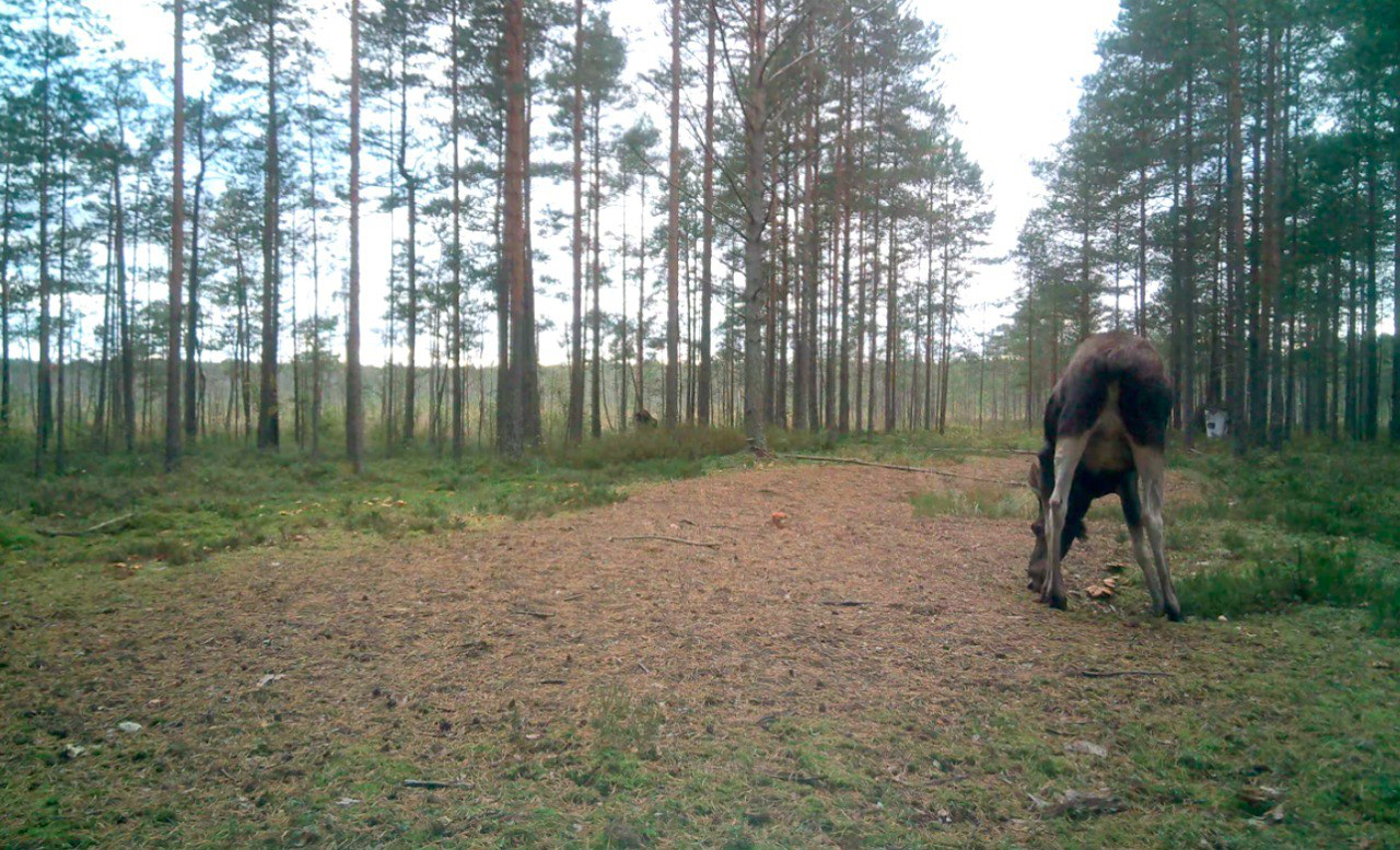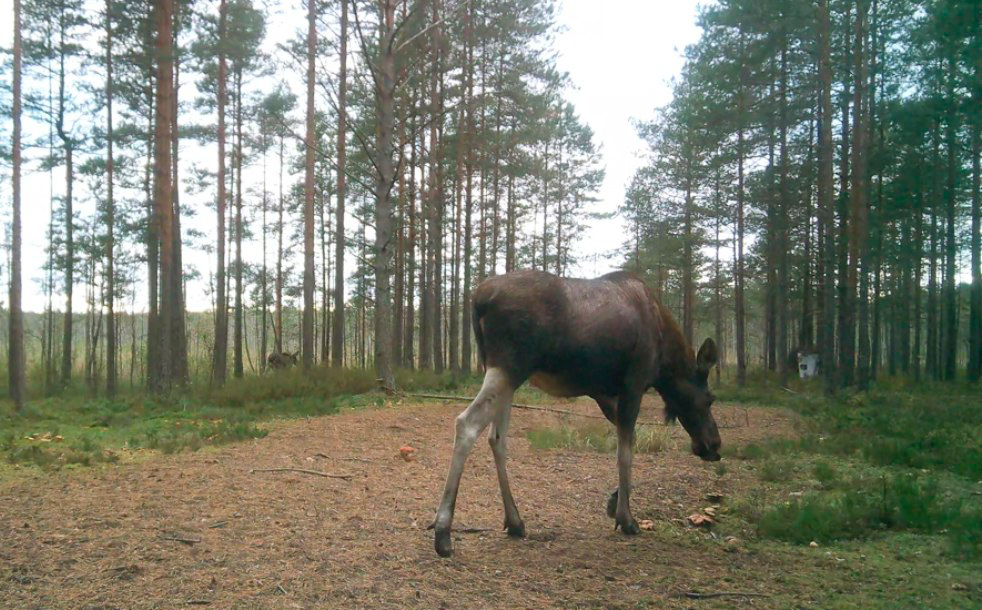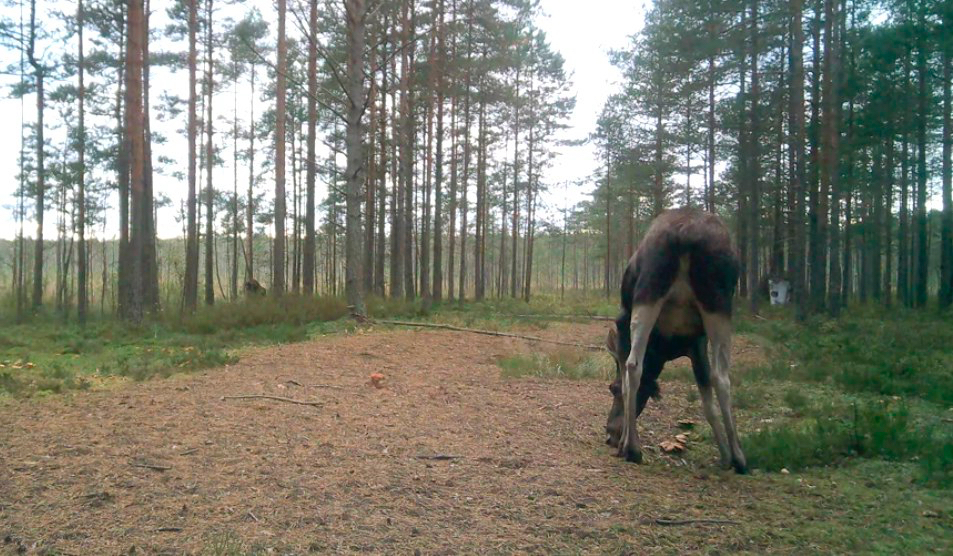 В объектив видеоловушки, установленной во Всеволожском районе Ленинградской области, попала трапеза лосихи. На рассвете лесная великанша с аппетитом поедала грибы.