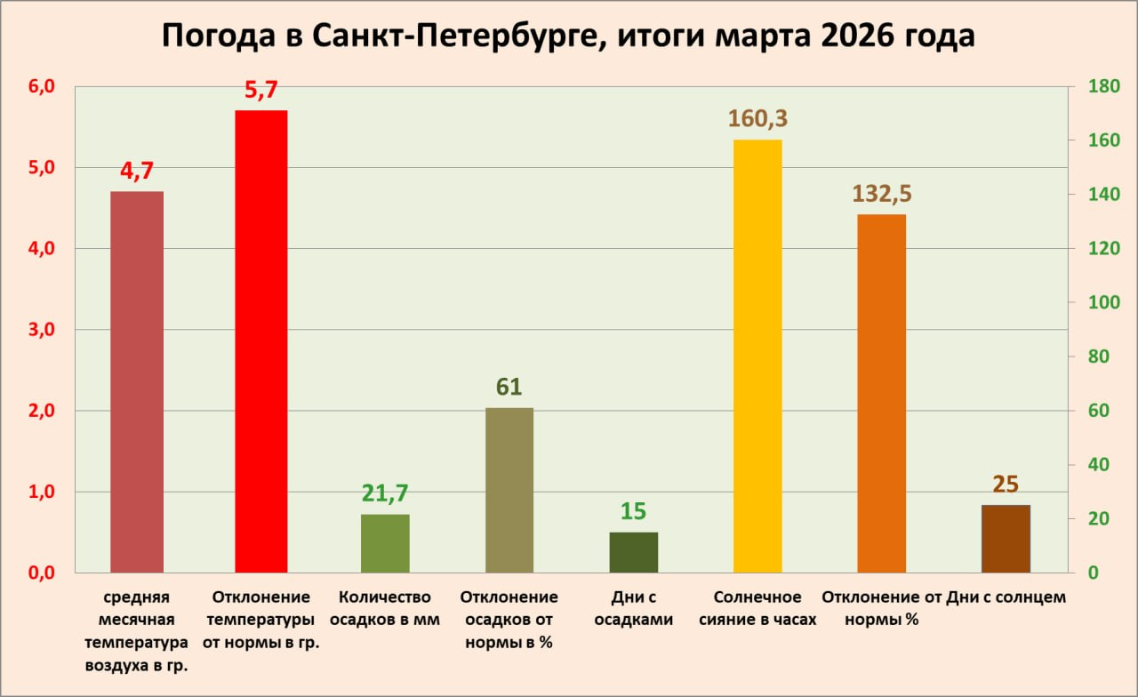 Март 2026 года подарил Петербургу рекорды температур