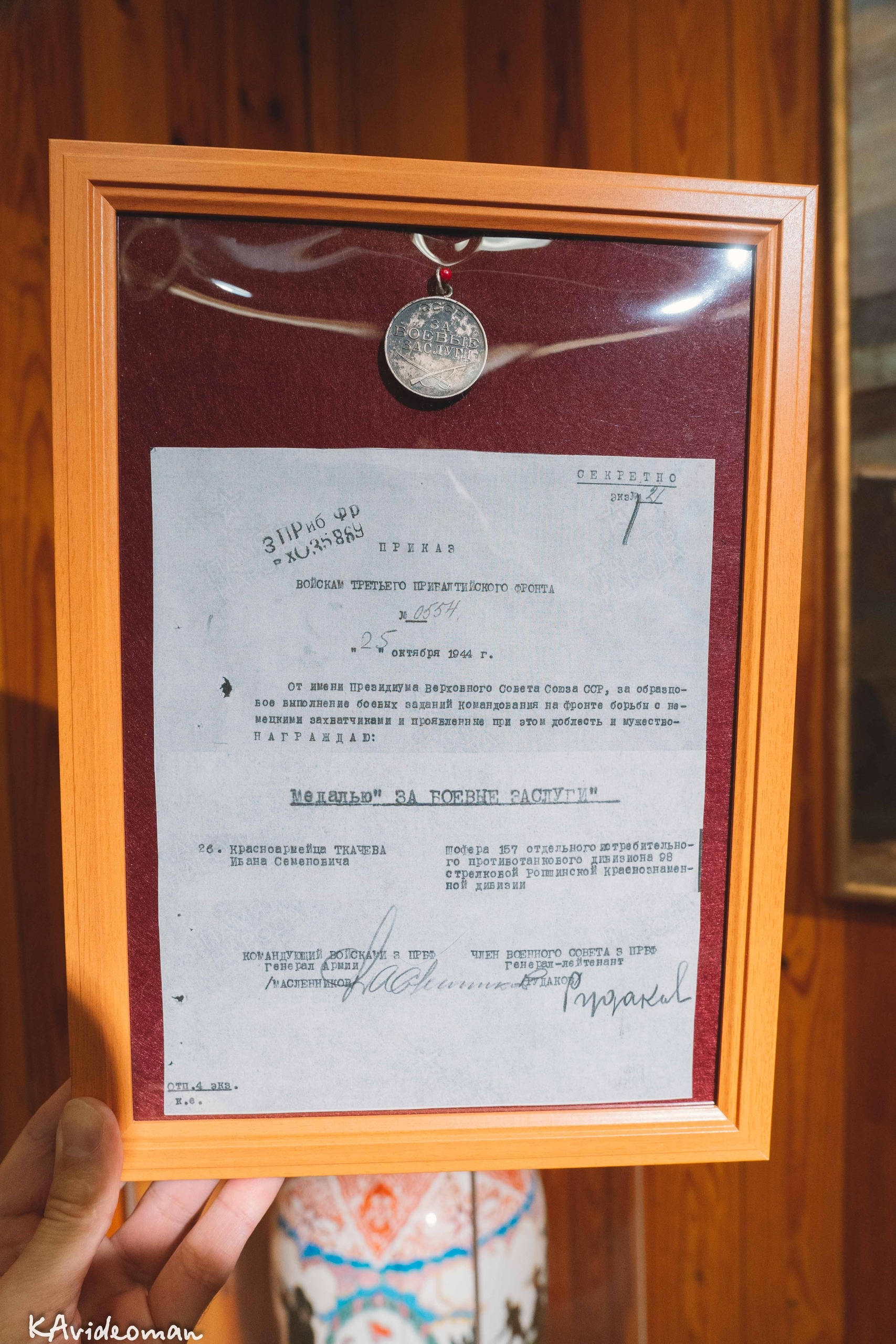 В минувшие выходные в музее «Свирская Победа» прошла торжественная церемония передачи боевой награды «За боевые заслуги». Медаль, найденная на Псковской земле, вернулась на Родину красноармейца Ивана Семеновича Ткачева - в город Лодейное Поле Ленинградской области.