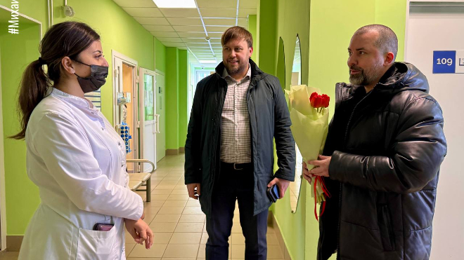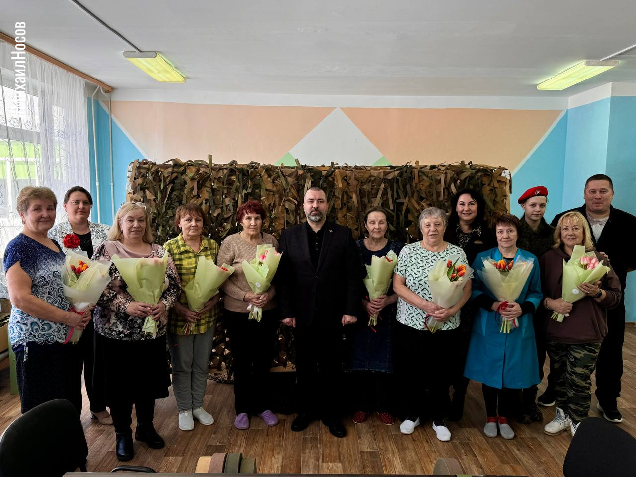 В преддверии 8 Марта Михаил Носов поздравил женщин в социальных учреждениях с предстоящим праздником. Он подарил им букеты тюльпанов.