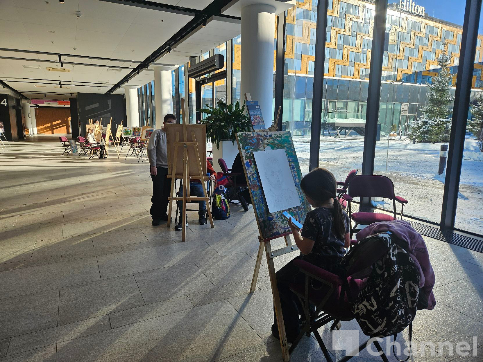 На площадке форума «Вместе Победим» в «Экспофоруме» работают несколько тематических выставок, посвященных Защитникам Отечества. Например, в рамках проекта «Портрет героя» дети рисуют портреты ветеранов и участников боевых действий с натуры.