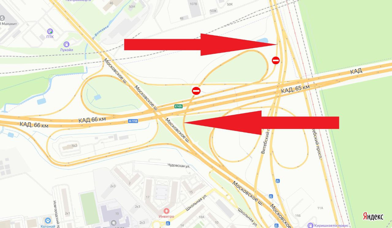 В ночь с 5 на 6 марта на 65-м километре КАД в Санкт-Петербурге полностью перекроют два съезда на развязке с Московским шоссе. Ограничения введут из-за ремонта деформационного шва. С 23:30 до 06:00 закроют съезды с Московского шоссе и с Витебского проспекта на внутреннее кольцо КАД.