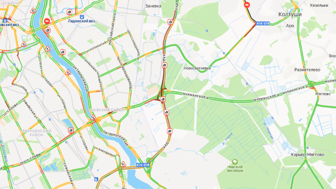 В понедельник, 2 февраля, во Всеволожском районе Ленинградской области произошла серия дорожно-транспортных происшествий на 49–52 километрах КАД в направлении города Кудрово. На момент подготовки публикации движение затруднено на участке протяженностью 8,59 километров.