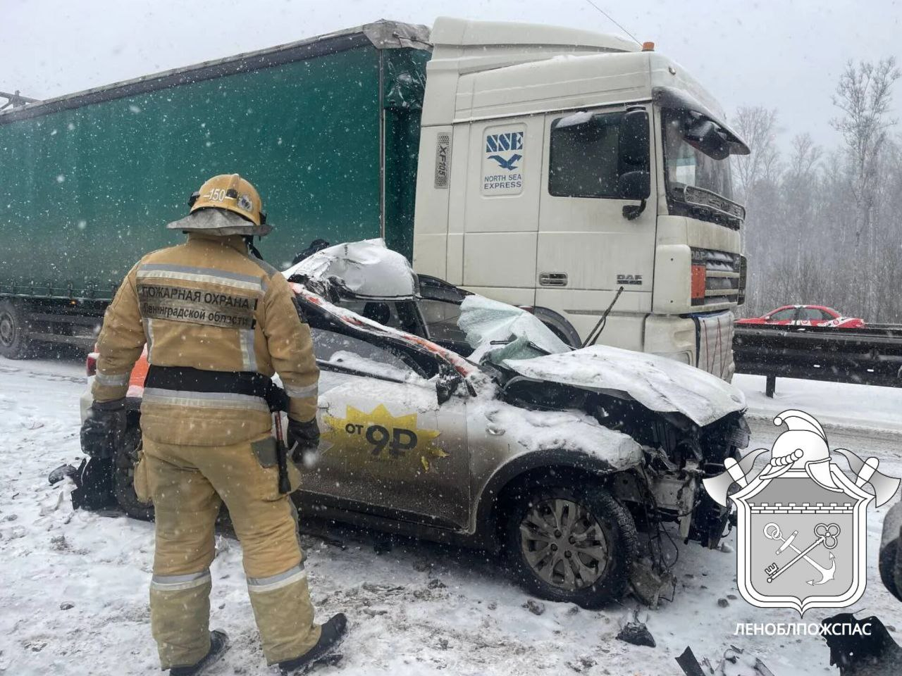 По данным МЧС, пострадал один человек — водитель легкового автомобиля. Его госпитализировали в Александровскую больницу Санкт-Петербурга, отметили в Леноблпожспас.