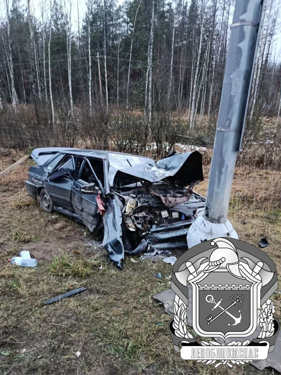 На Мурманском шоссе двое пострадали после того, как ВАЗ-2115 врезался в столб