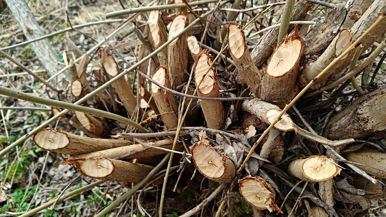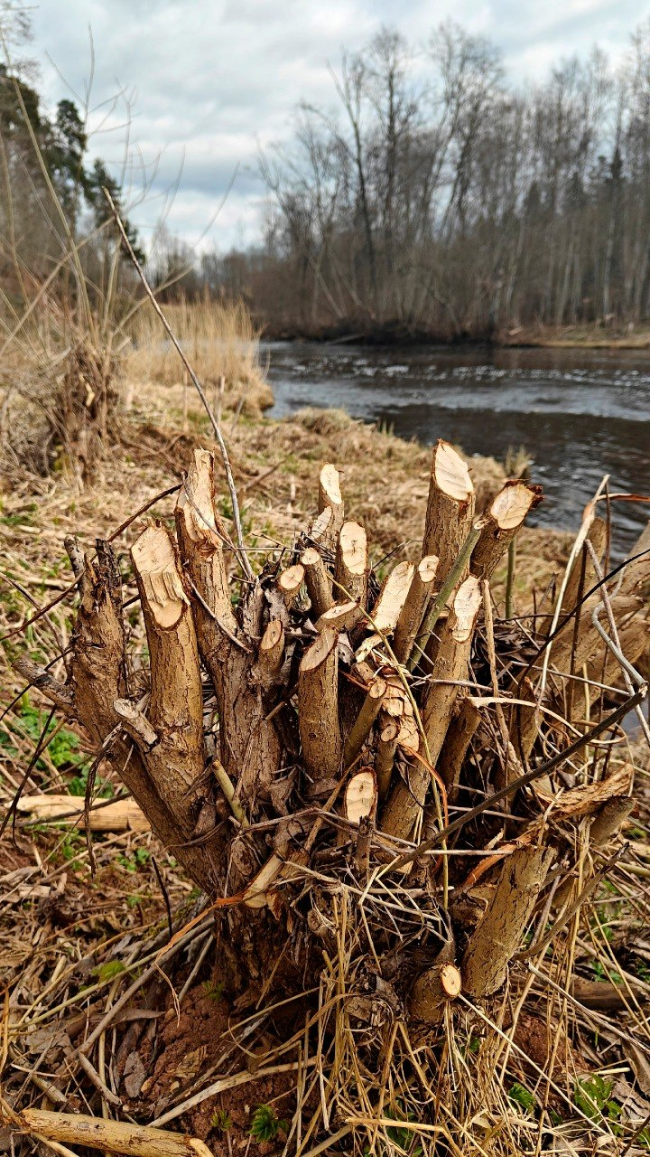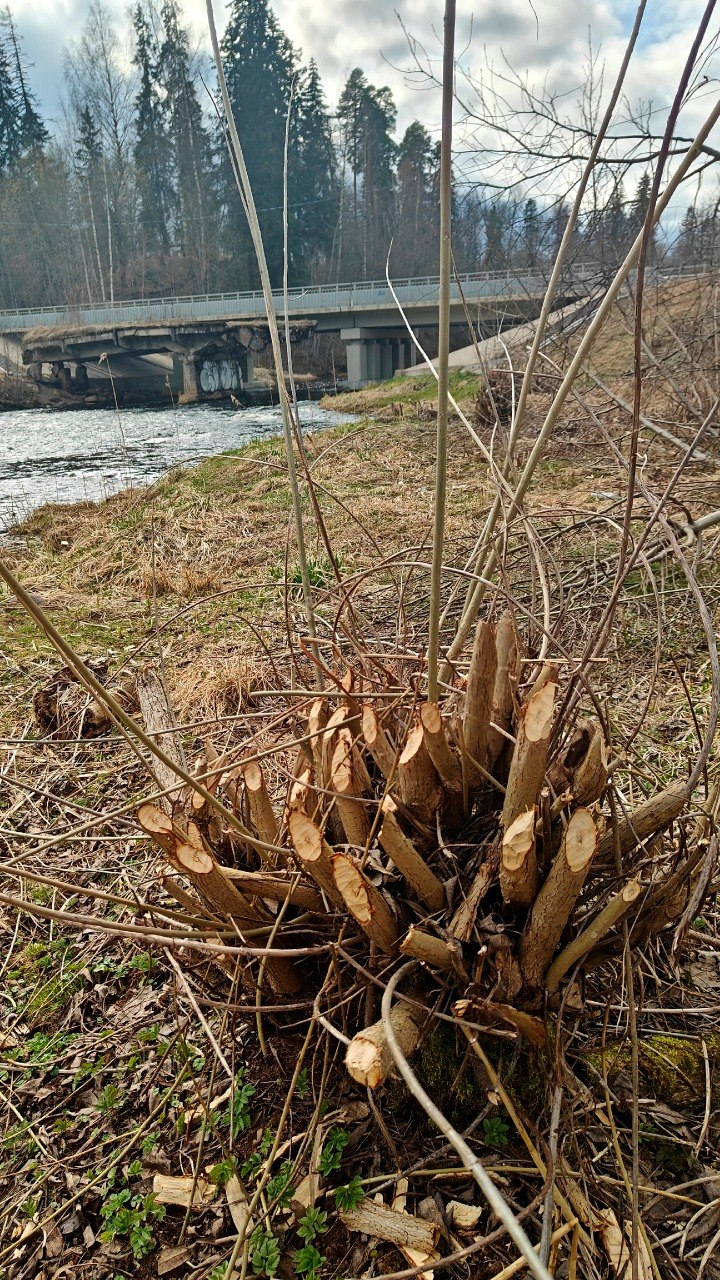 На территории памятника природы Ленинградской области «Обнажения девона на реке Оредеж у поселка Белогорка» бобры необычным образом обгрызли ветки ивы. Животные превратили кусты в причудливые «деревянные букеты».