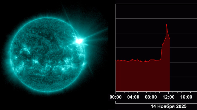 Утром в пятницу, 14 ноября, на Солнце была зарегистрирована мощная вспышка уровня X4.05. Эпицентр события находился в активной области 4274 на северном полушарии светила, которая всего пару дней назад произвела рекордную вспышку X5.15 — самую сильную за год и вторую по мощности за пять лет, вызвавшую магнитную бурю 11–13 ноября.