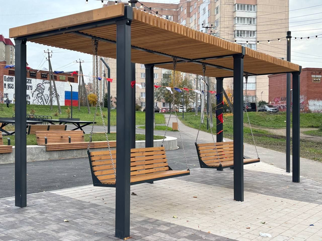 На улице Верхняя появились оборудованные площадки с навесами и качелями, обустроено место для настольного тенниса, предусмотрено новое асфальтовое и резиновое покрытие, а также создана яркая детская игровая зона.