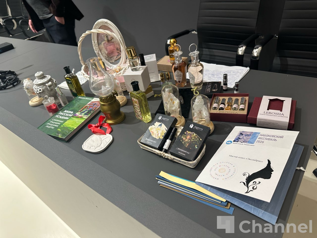 Интерес публики вызвала литературно-парфюмерная встреча. Коллекционер ароматов российских парфюмеров Ольга Костюкова рассказала о композициях, вдохновленных произведениями Набокова. Все желающие смогли сами послушать и определить ноты.